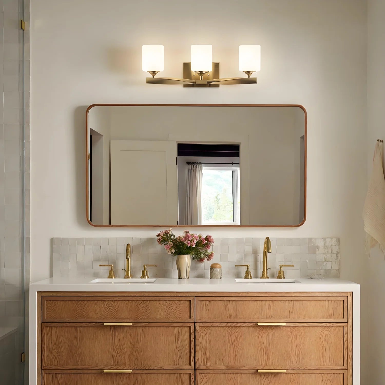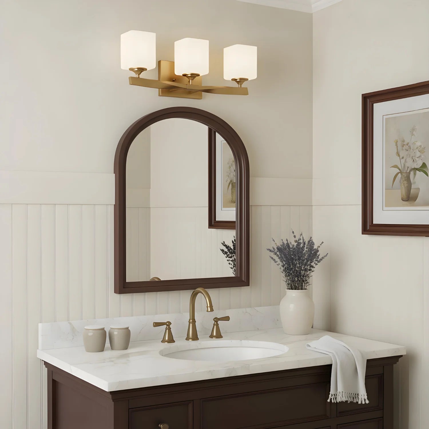 This wall lamp features satin etched cased opal glass with a champagne bronze finish, making it a perfect match for modern and classic home decor.