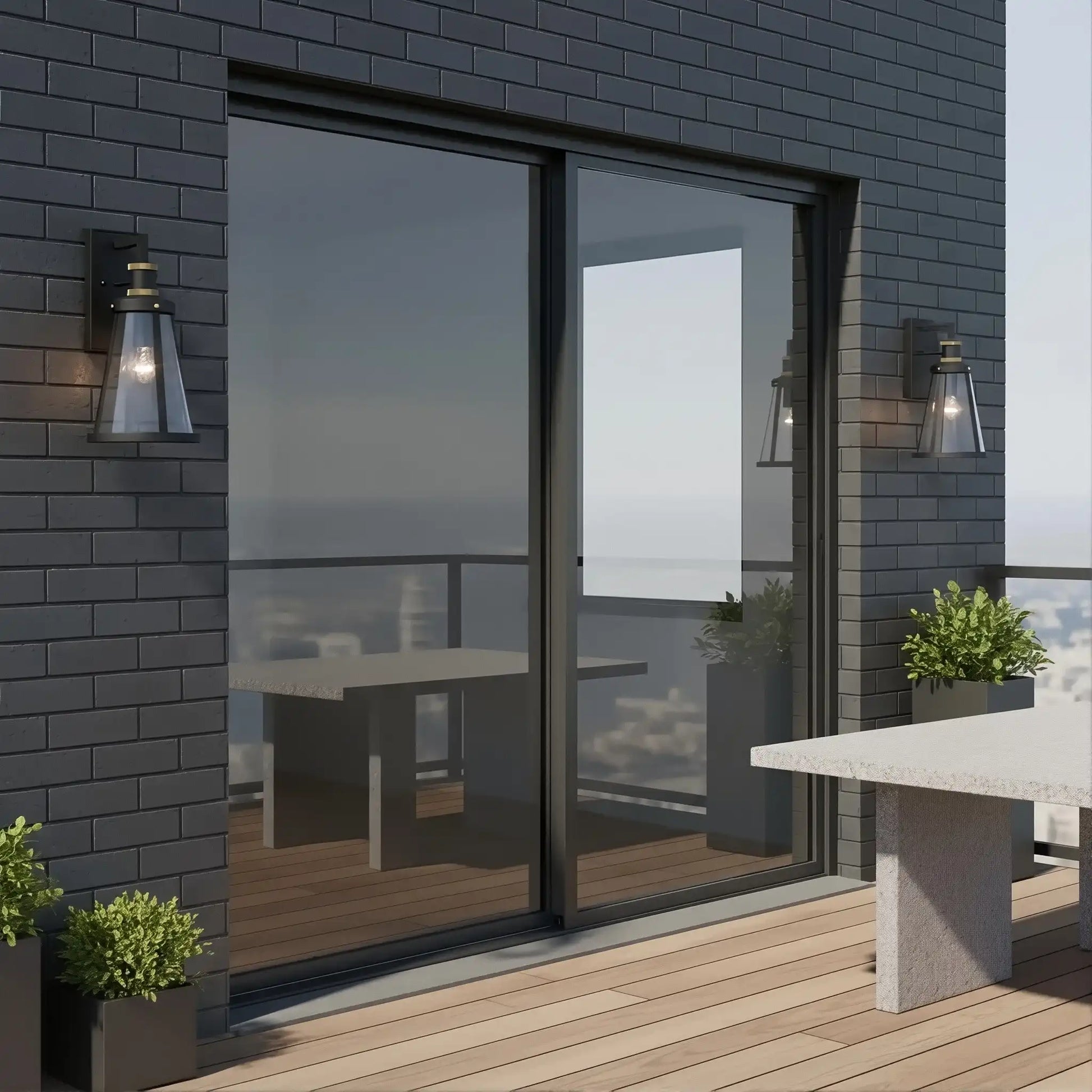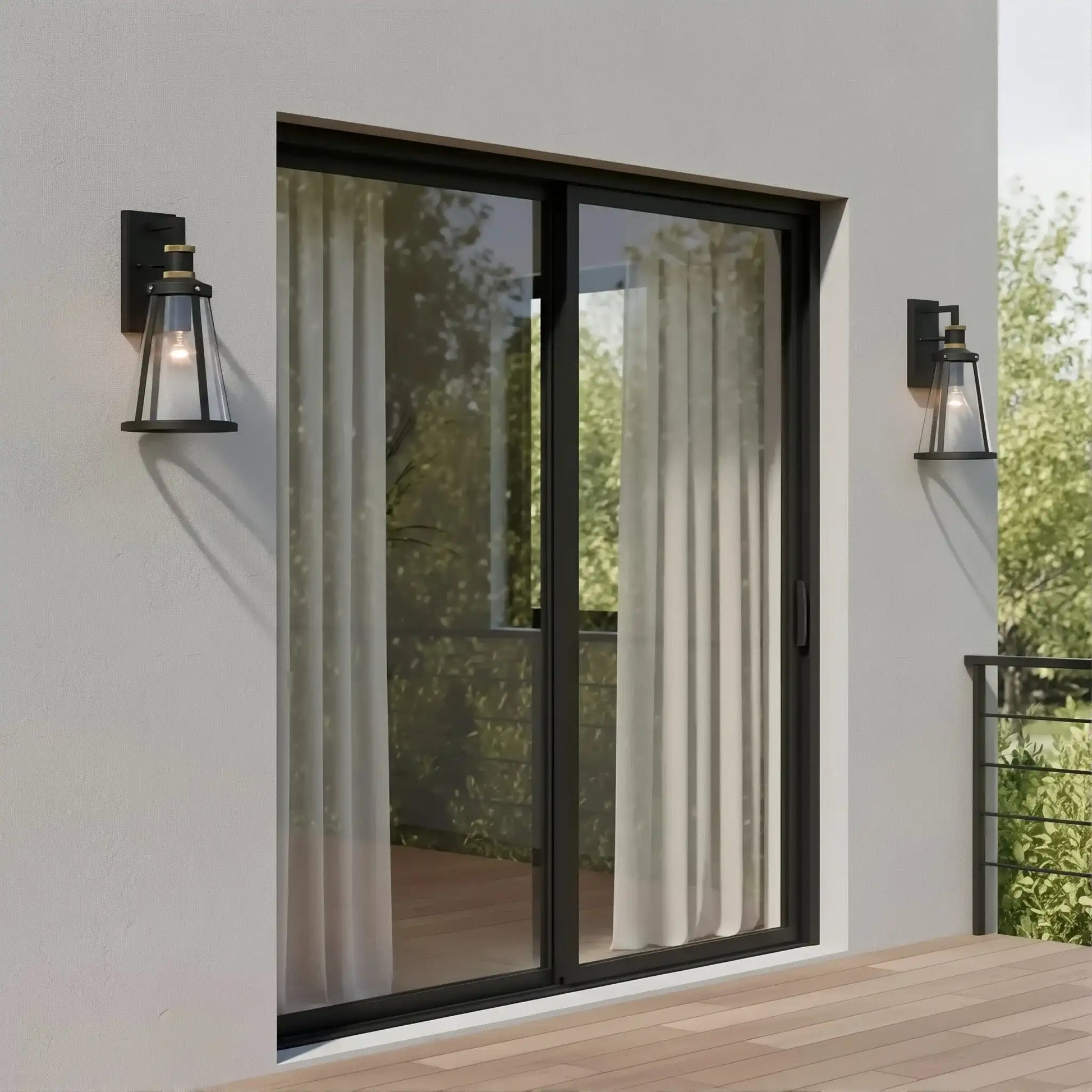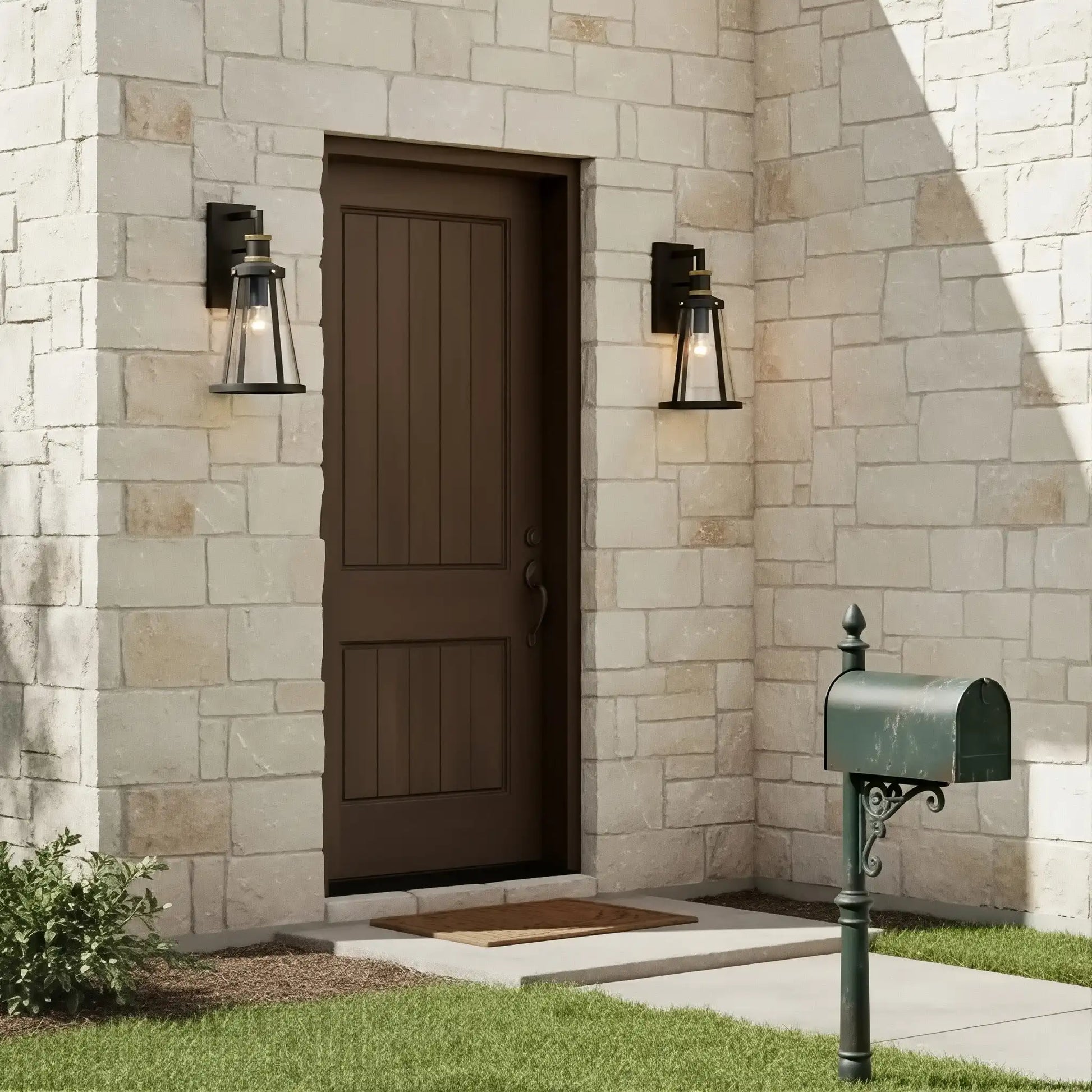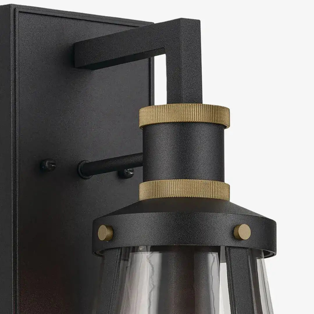 The outdoor wall light presents a tall, sculptural silhouette with clean geometric lines and a textured-glass shade that adds visual depth. This exterior wall fixture delivers a refined architectural presence for porches, entryways, patios, and exterior walls. Durable construction and straightforward installation make it a versatile choice for contemporary and transitional exteriors.
