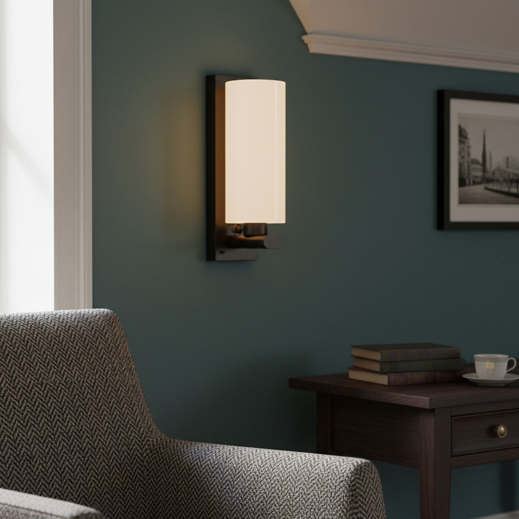 This Industrial Indoor Glass Wall Sconce blends rugged metal frames with a diffused glass shade, casting warm, gentle glow. Its sleek cylindrical shape and matte hardware embody industrial-chic minimalism—ideal for accenting hallways, bedrooms, or modern lofts as a functional, stylish lighting piece.