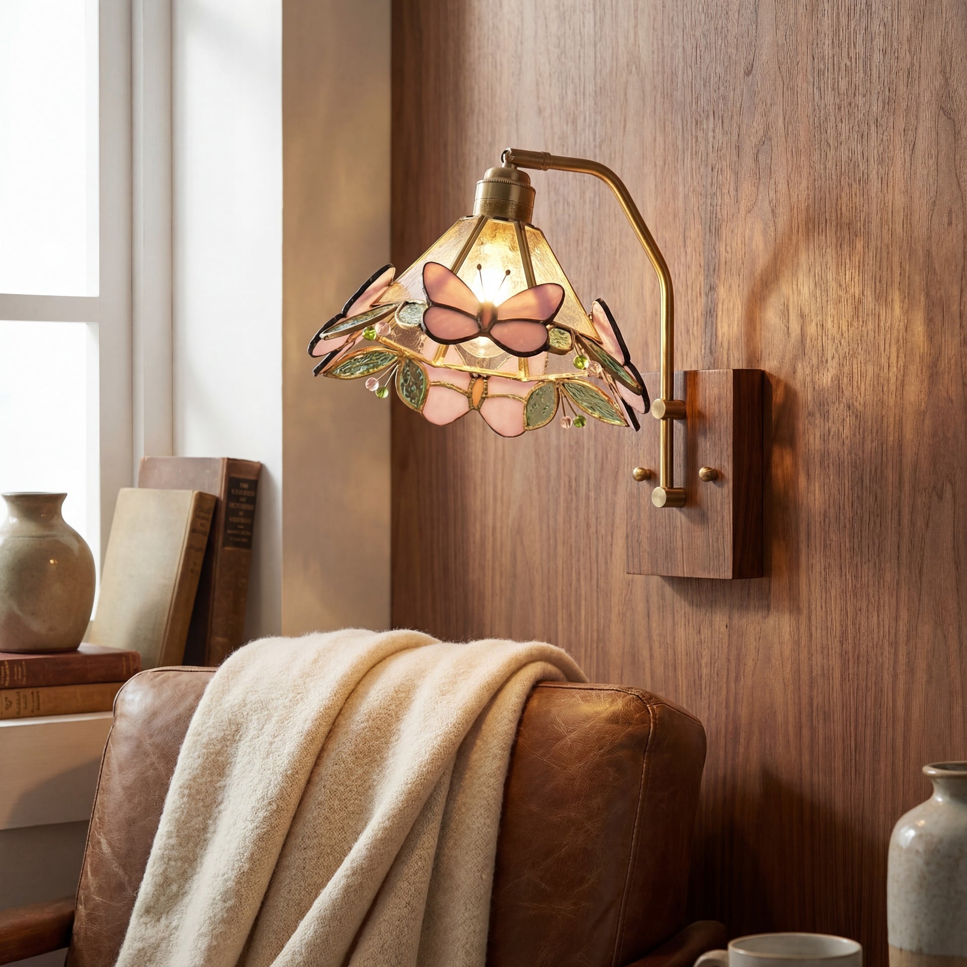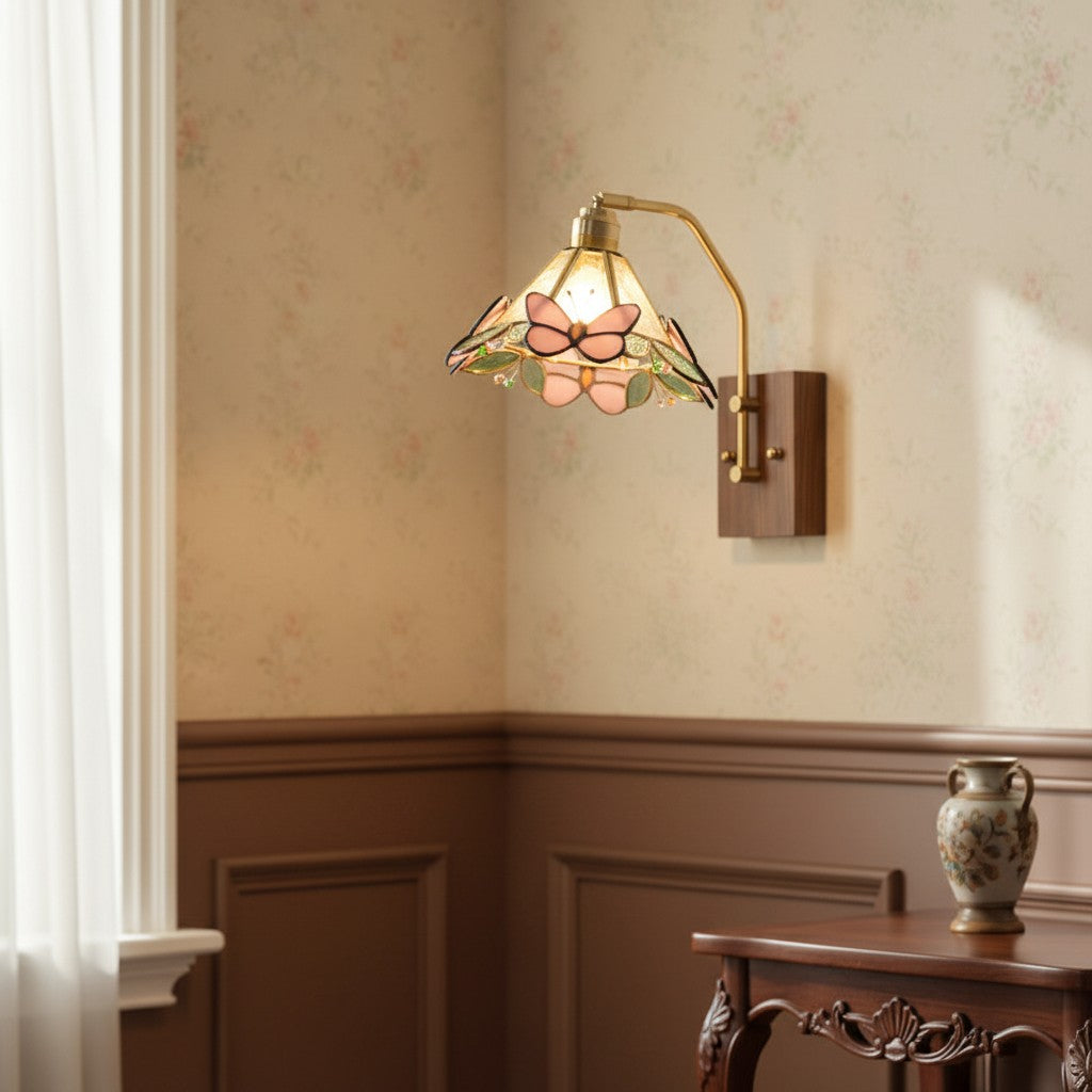 Elevate your space with this Tiffany Indoor Metal Butterfly Wall Sconce.Delicate butterfly motifs hover around a sculptural lighting frame, casting soft, enchanting illumination. Perfect for bedrooms, living rooms, hallways, and accent spaces, this indoor wall light blends artistic design with functional ambient lighting.