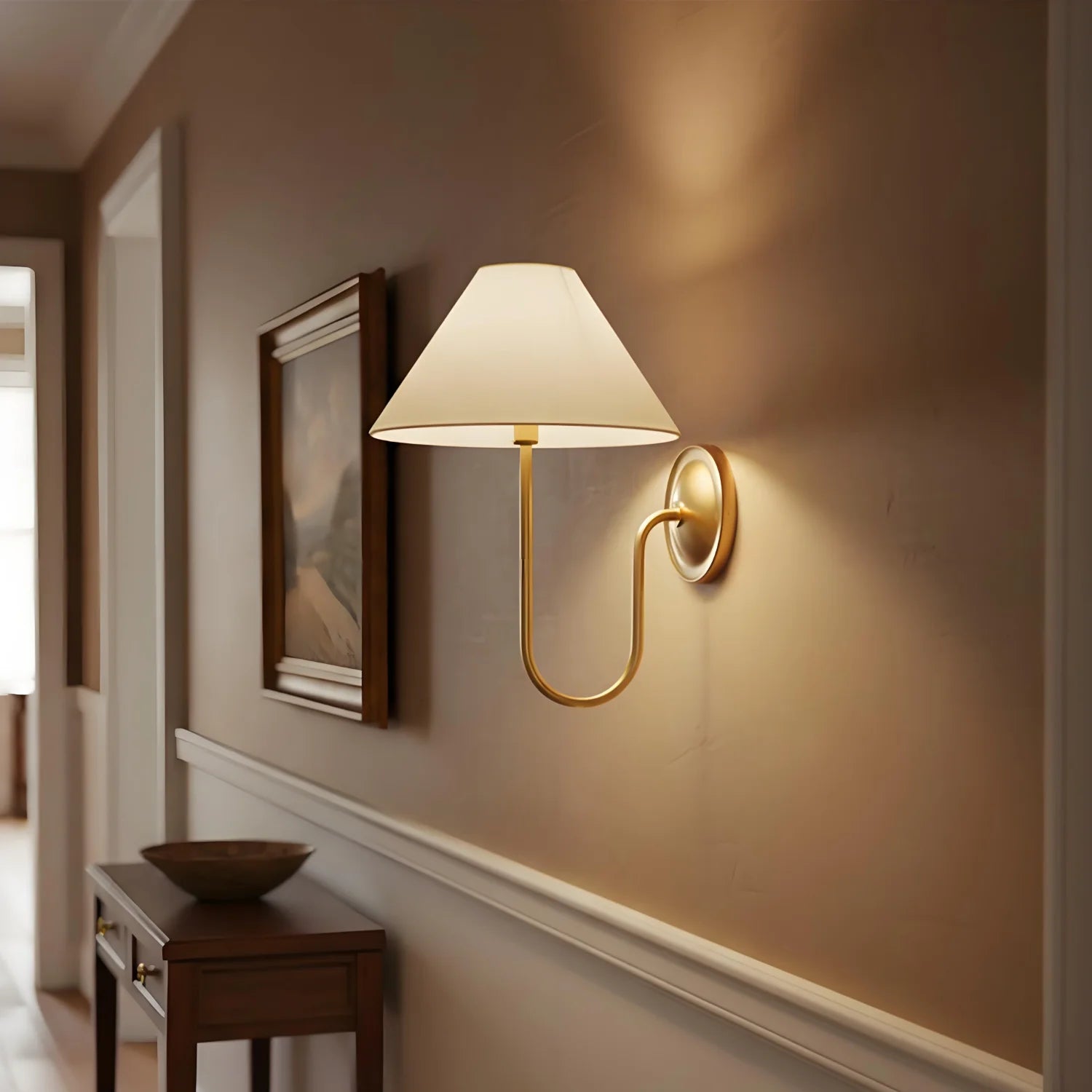 This retro wall lamp features an elegant curve and a simple design. It brings elegance to hallways, bedrooms and living spaces, perfect for decor.