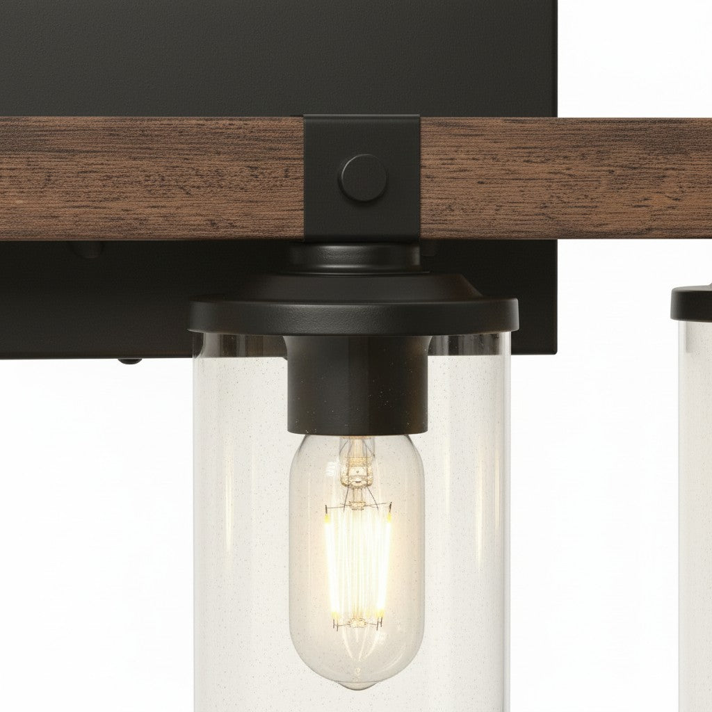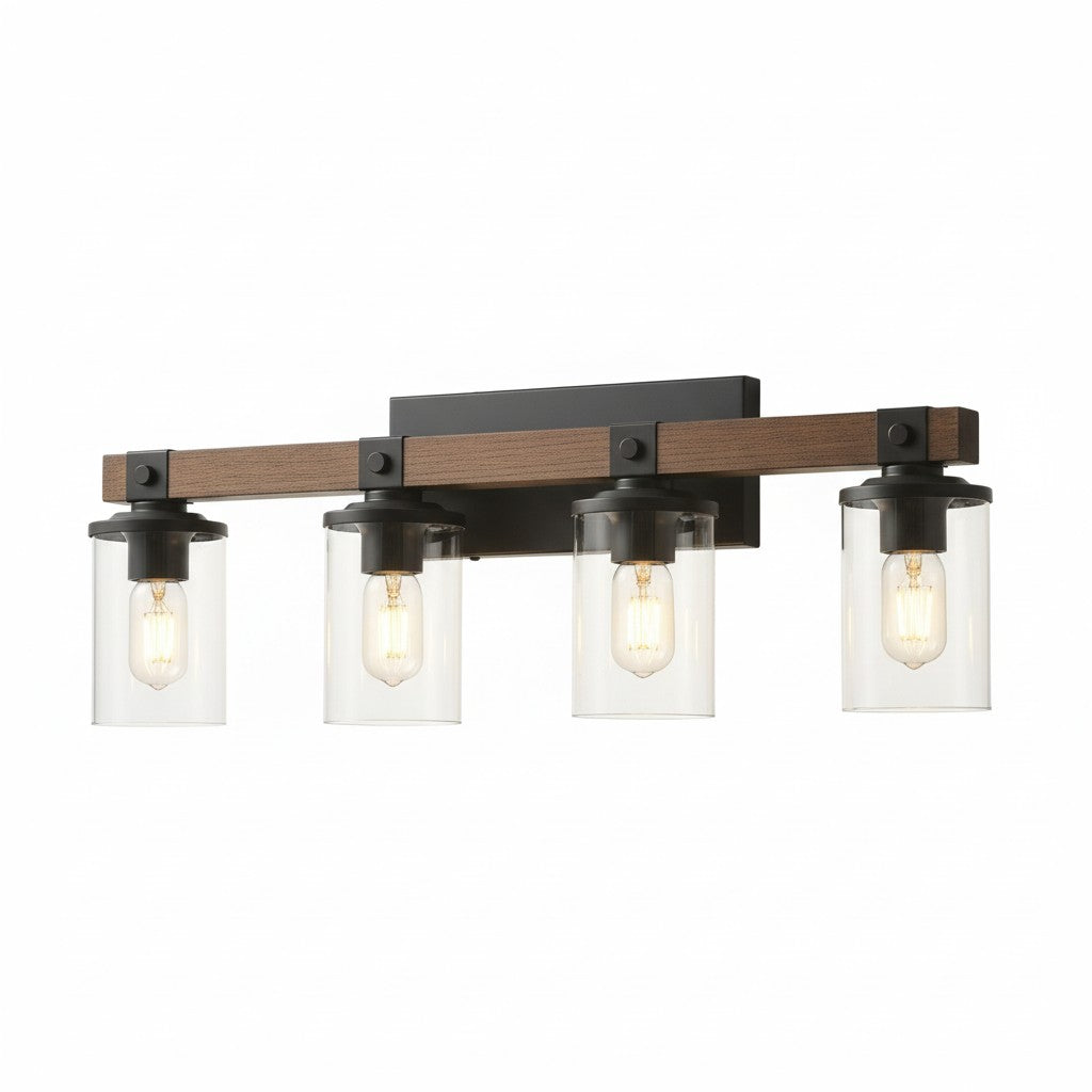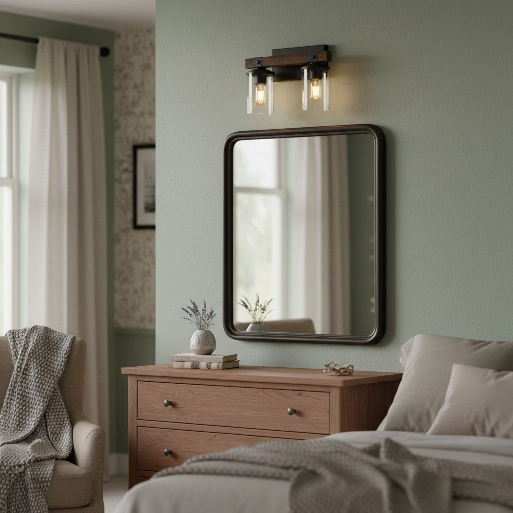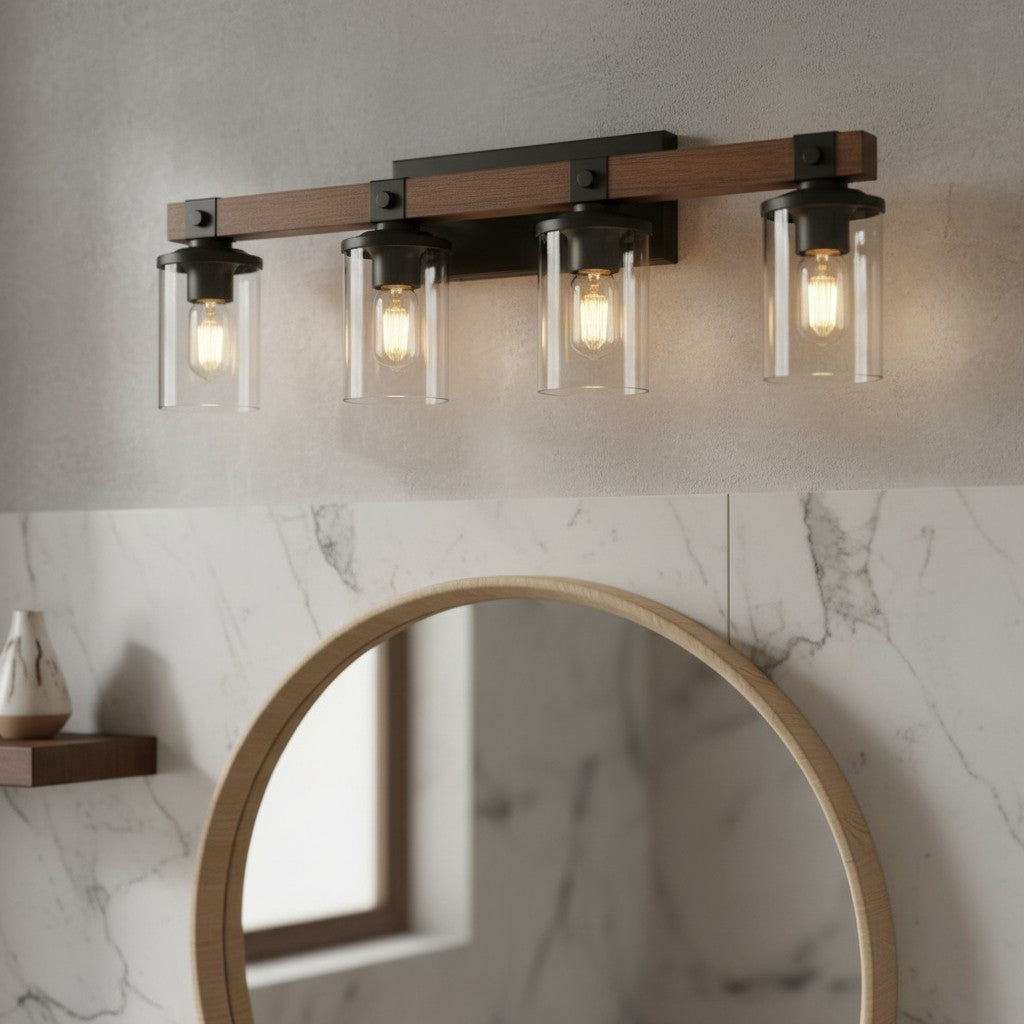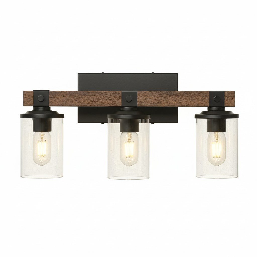 Elevate your bathroom with this Industrial Black Metal Wood Farmhouse Vanity Wall Sconce, designed with a sturdy black metal and wood frame for a clean, contemporary look. Its clear-glass shade diffuses light softly, offering both bright task illumination and warm ambient glow with dimmer compatibility.