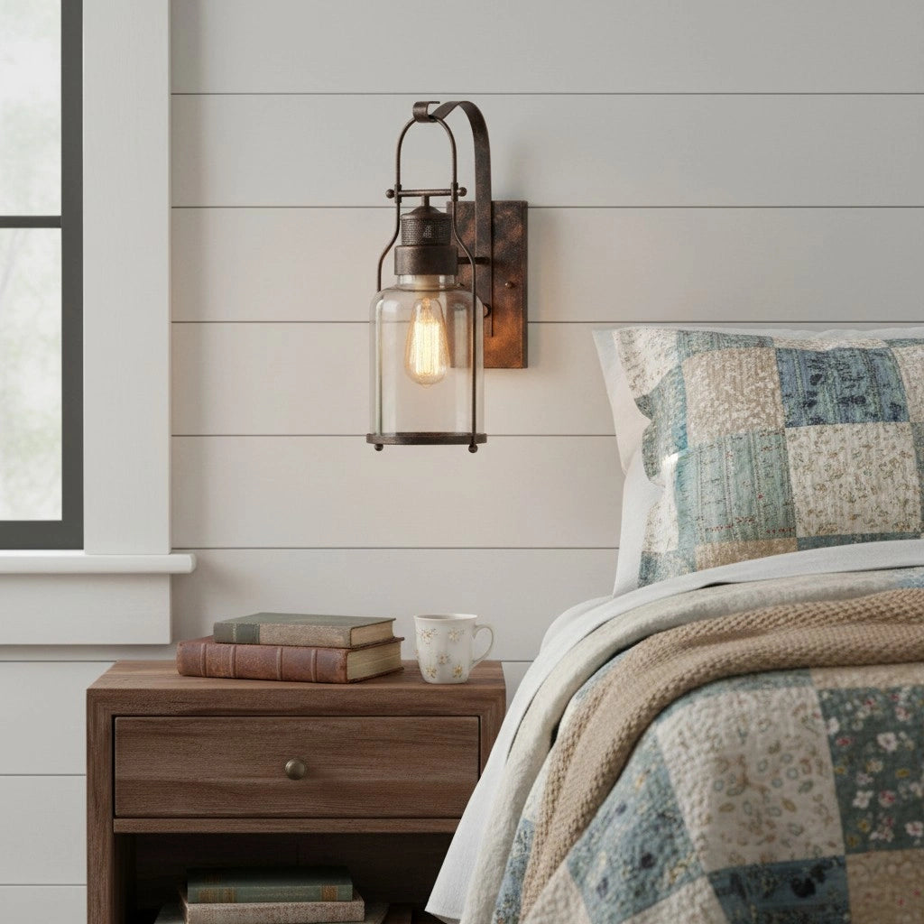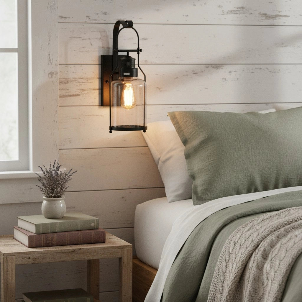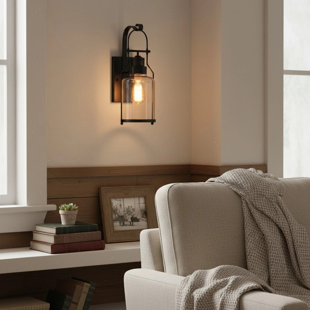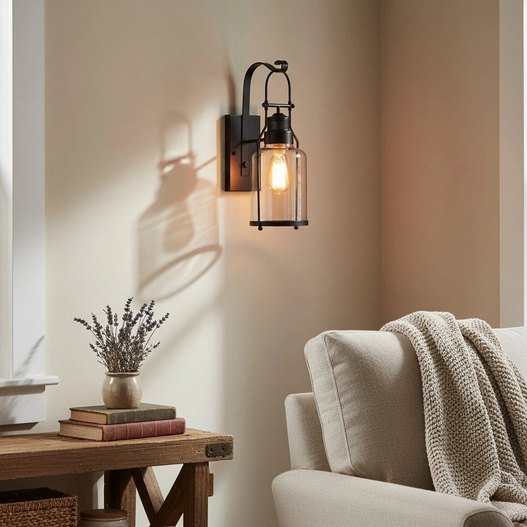 This single-light wall sconce features a streamlined cylindrical design, highlighting the light source while maintaining visual simplicity. Made from sturdy iron and encased in clear glass, it emits a warm, soft glow, making it perfect for hallways, entryways, bedside walls and lofts.