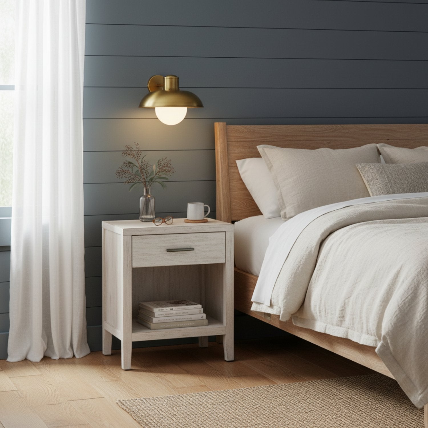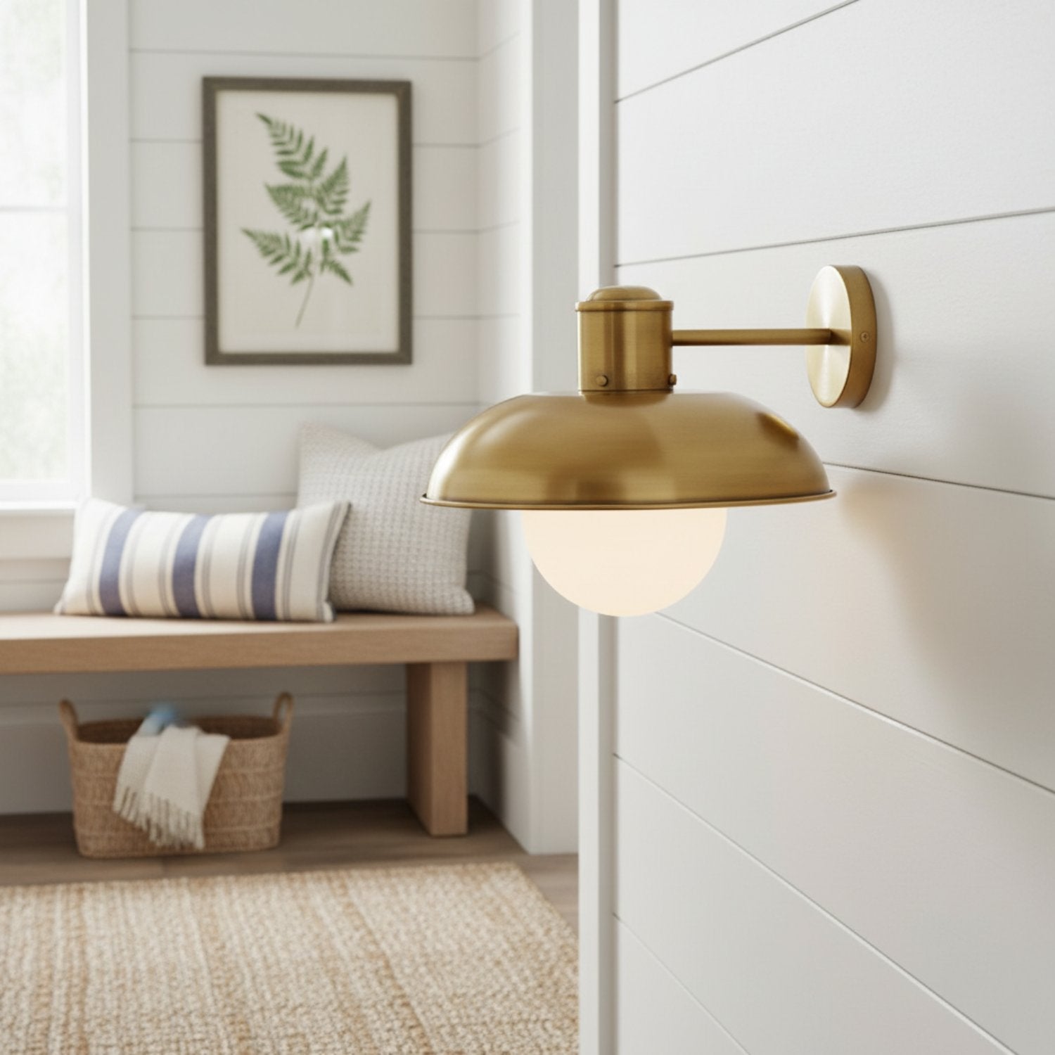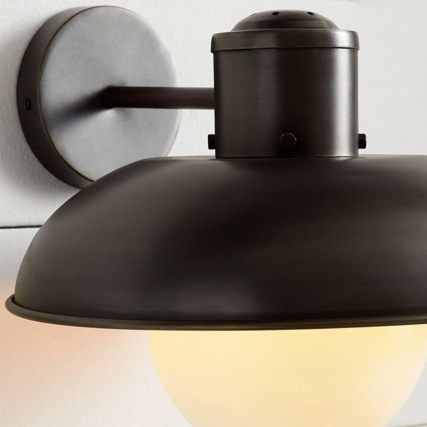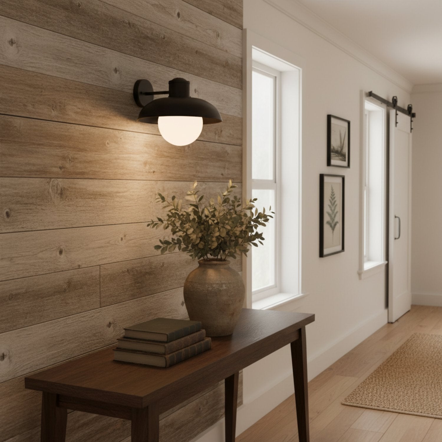 This industrial-style wall sconce features a soft, milky-white glass shade and a richly textured metallic finish, enhancing the ambiance of any room. Ideal for hallways, bathrooms, bedrooms, and entryways, its retro-industrial design easily complements modern or transitional décor while providing reliable ambient lighting.