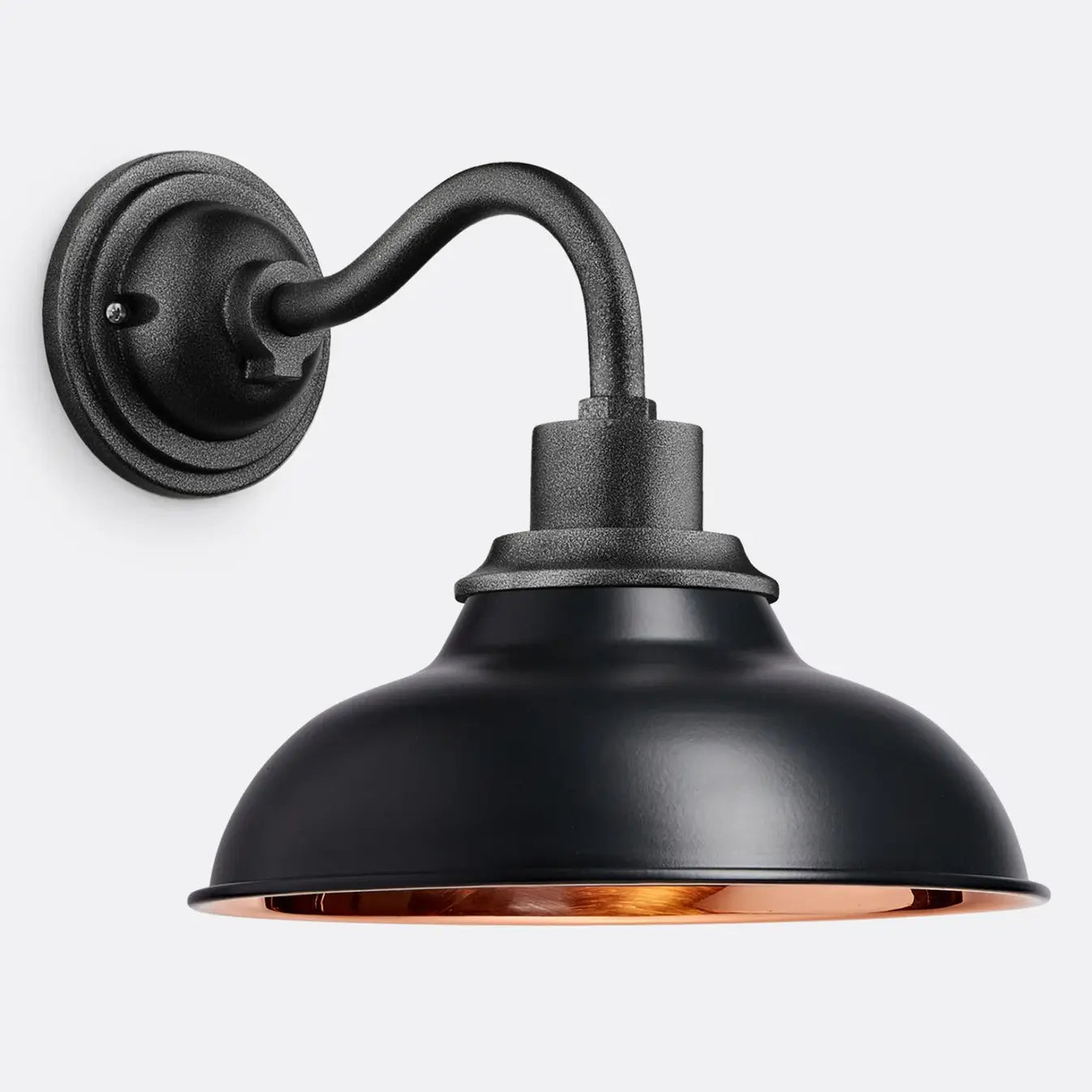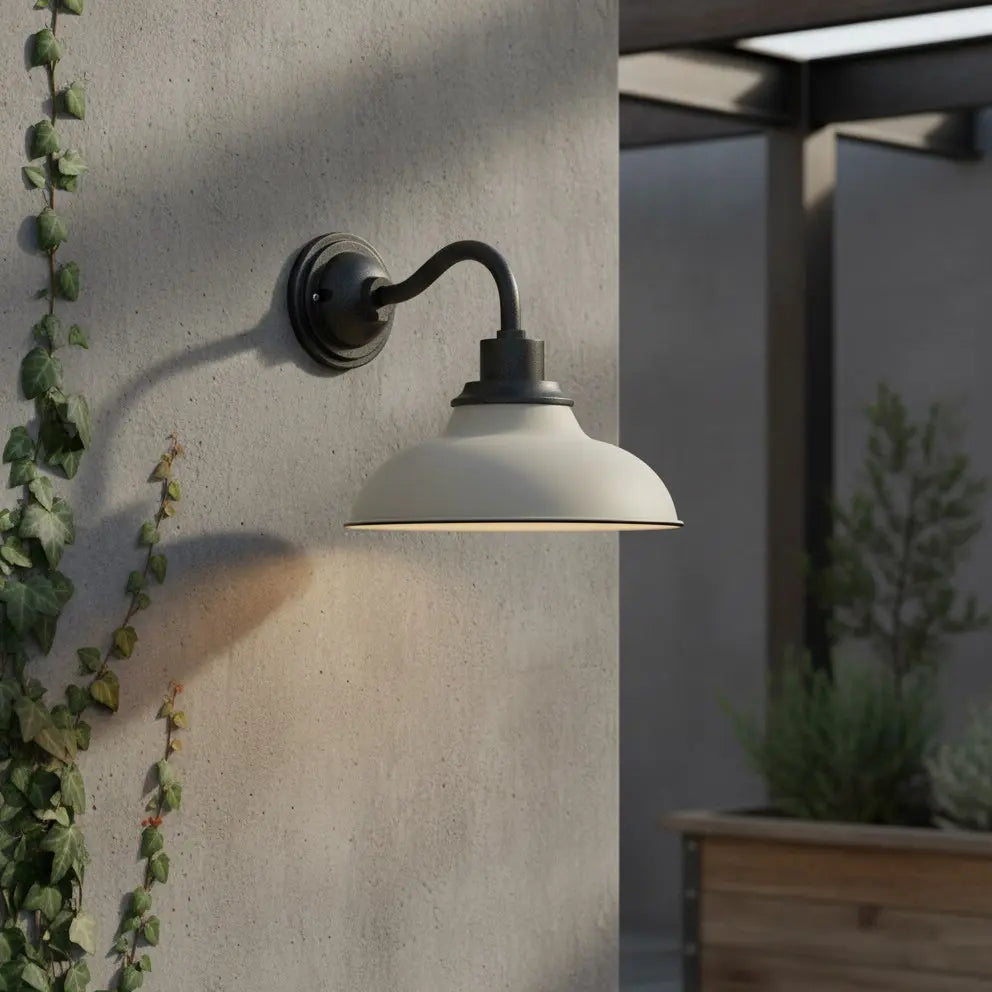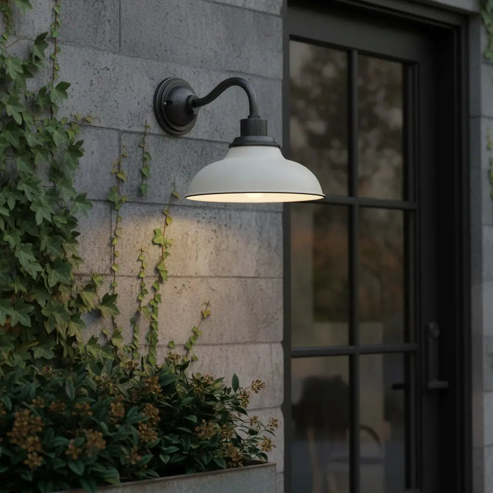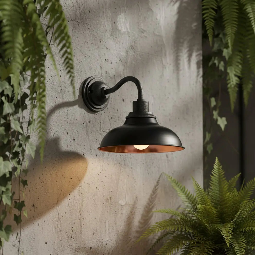 This industrial wall light features a sturdy metal dome silhouette, built to withstand outdoor conditions while exuding rugged, utilitarian charm. Merging durability and bold design, it elevates exterior spaces. Ideal for patios, entryway awnings, or backyard wall accents.