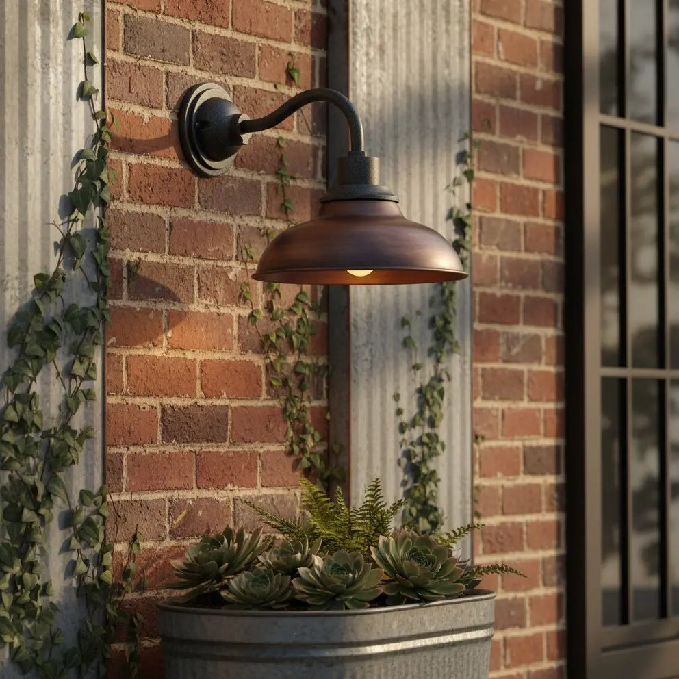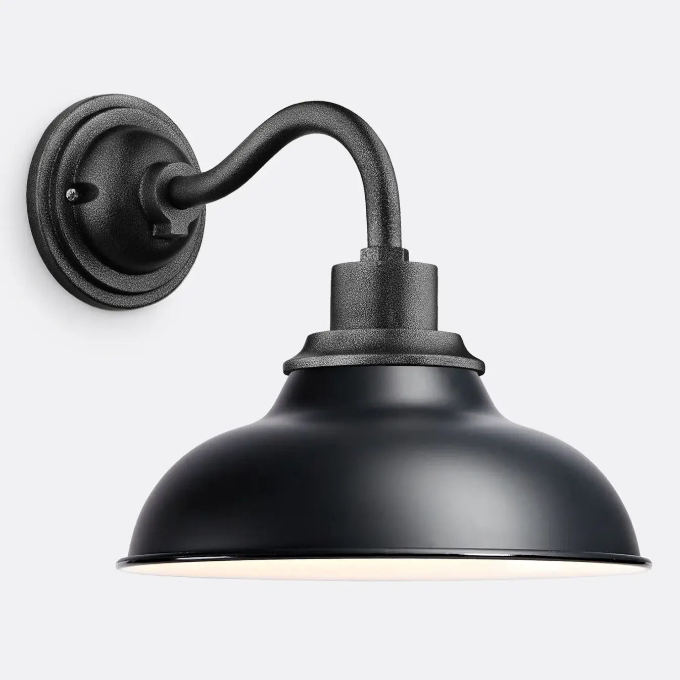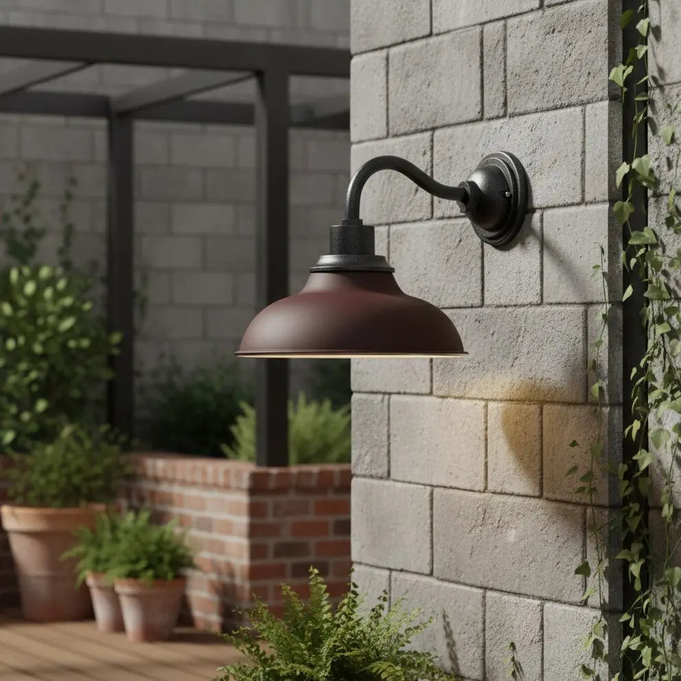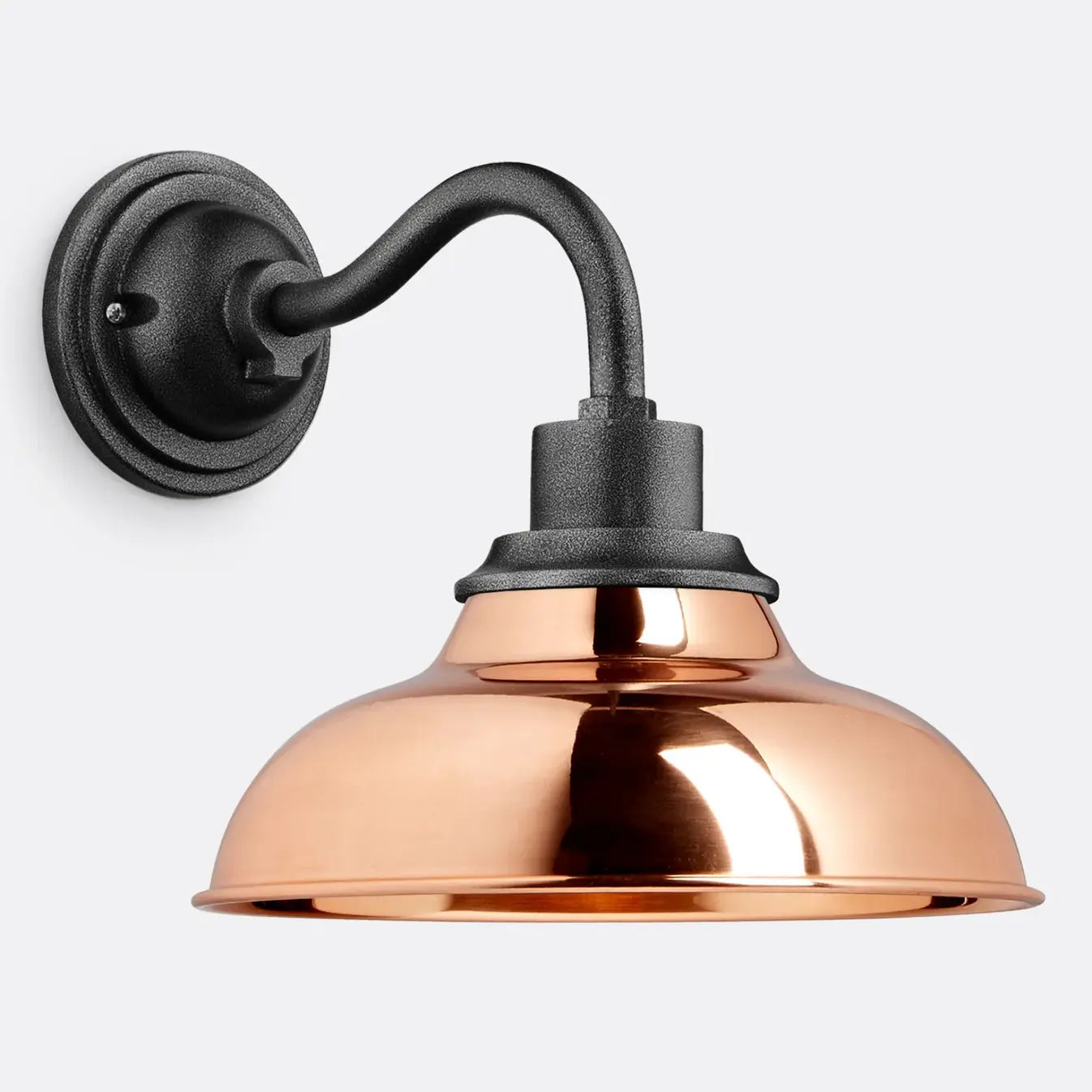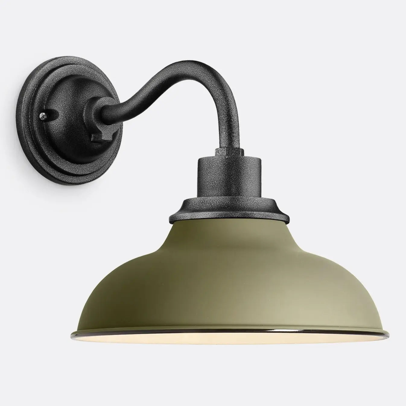 This industrial wall light features a sturdy metal dome silhouette, built to withstand outdoor conditions while exuding rugged, utilitarian charm. Merging durability and bold design, it elevates exterior spaces. Ideal for patios, entryway awnings, or backyard wall accents.