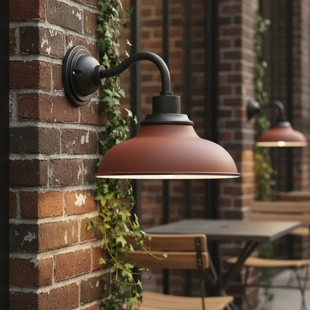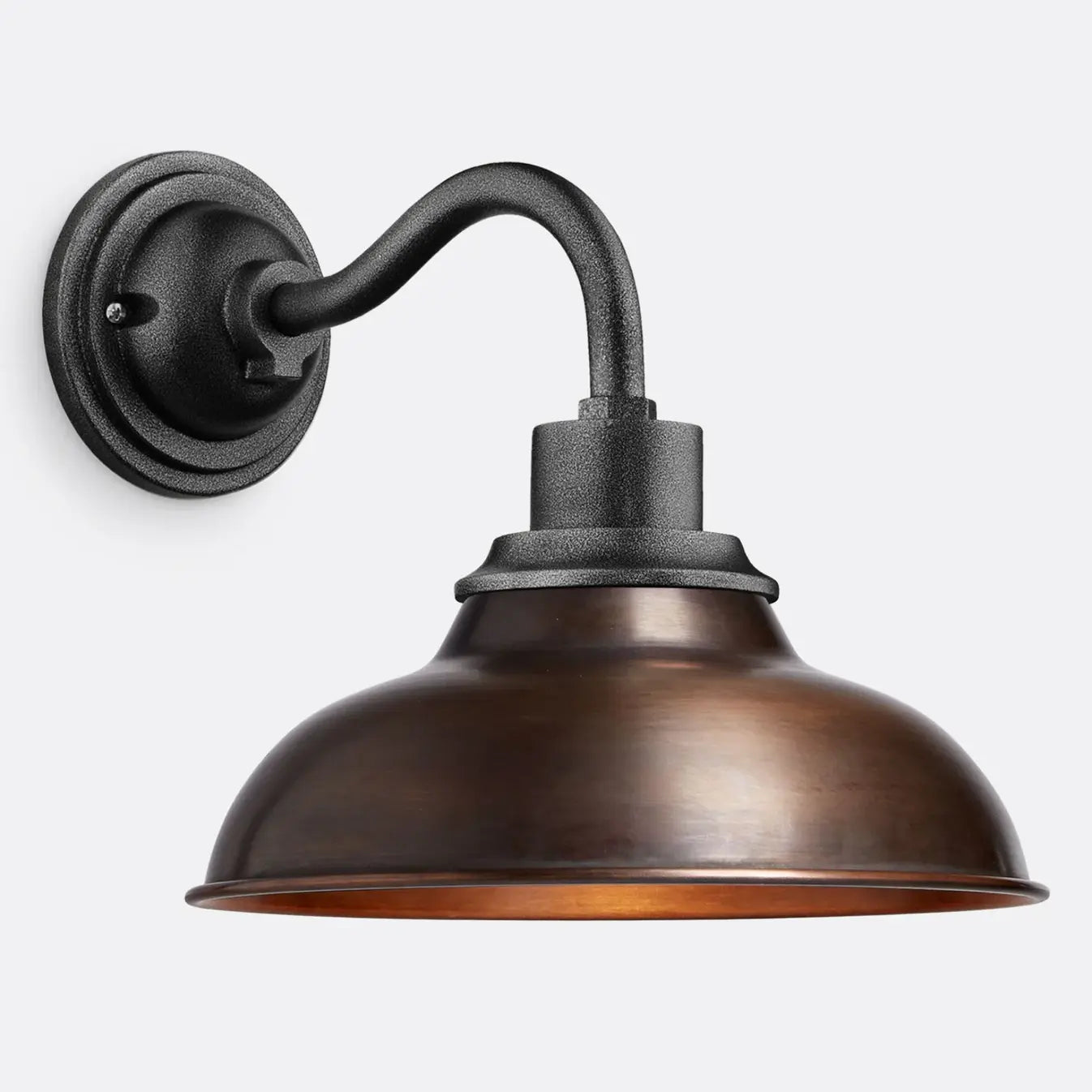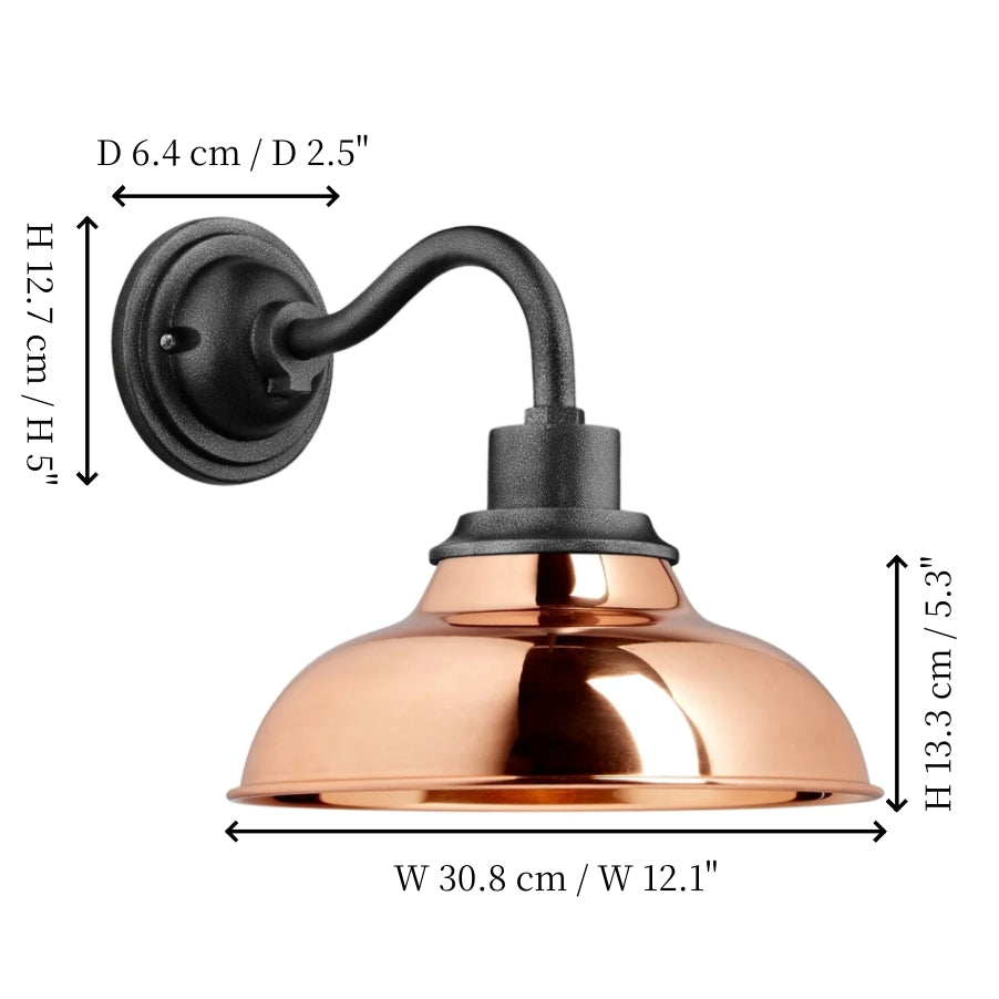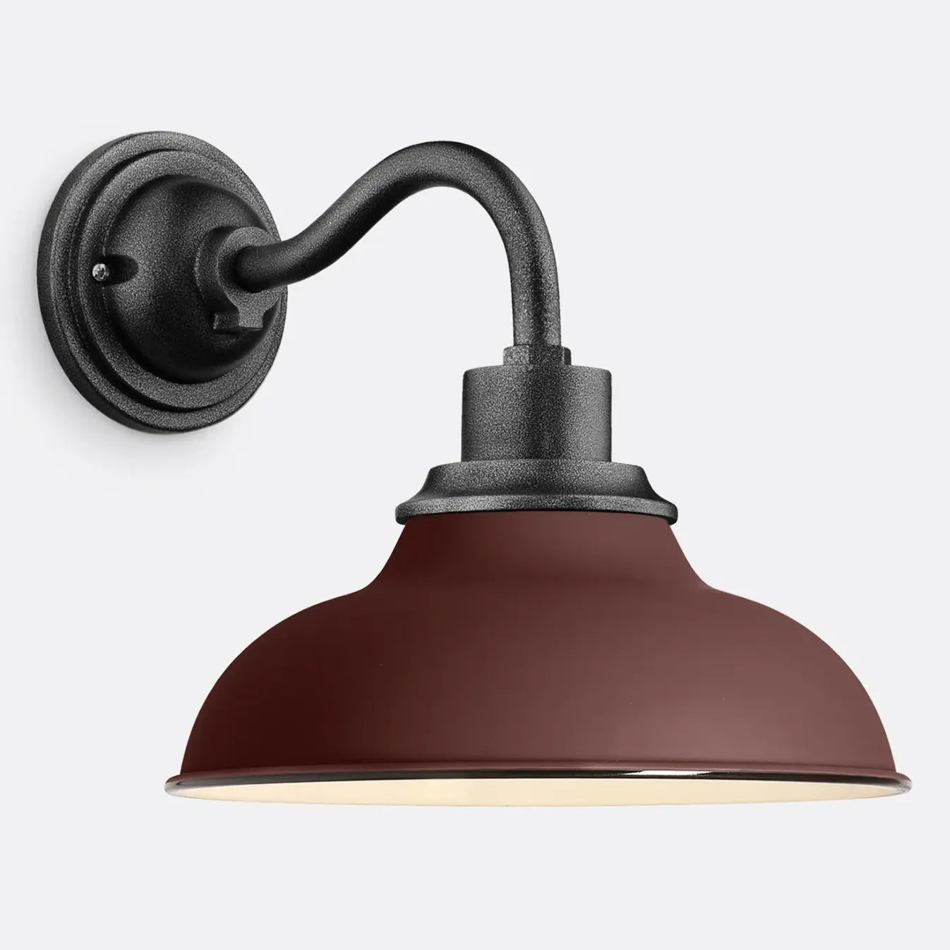 This industrial wall light features a sturdy metal dome silhouette, built to withstand outdoor conditions while exuding rugged, utilitarian charm. Merging durability and bold design, it elevates exterior spaces. Ideal for patios, entryway awnings, or backyard wall accents.