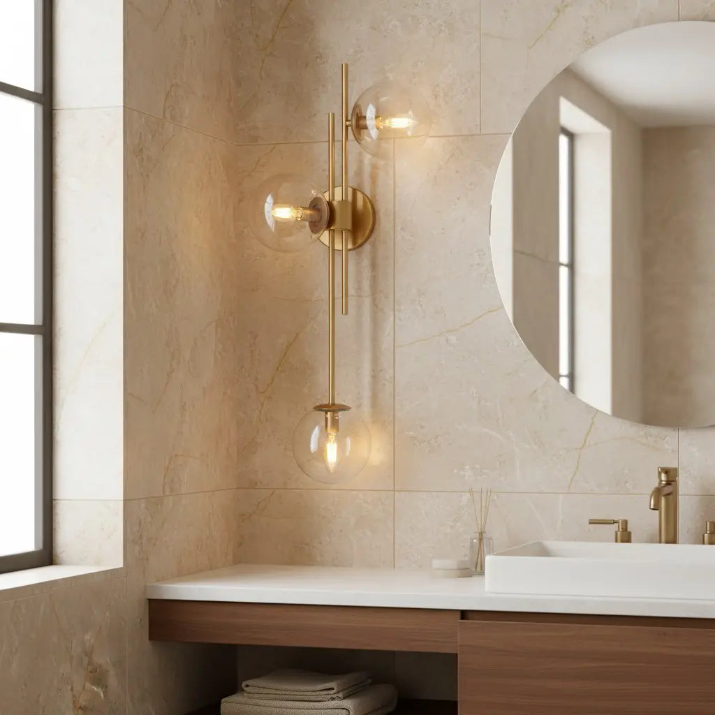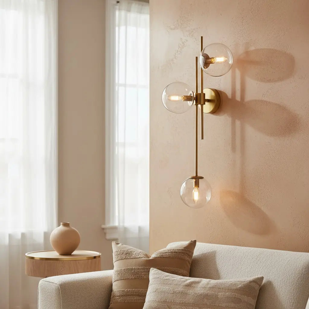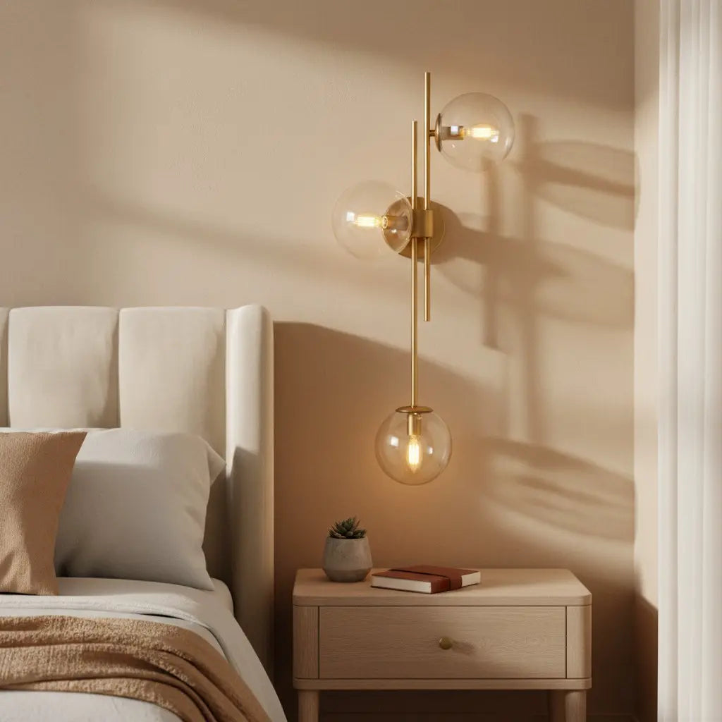 Exuding modern luxury, this 3-light wall sconce pairs sleek gold framing with translucent glass globes—merging radiant metallic warmth and soft, luminous texture. It casts a layered, opulent glow, ideal for elevating bedroom accent walls, formal hallway nooks, or upscale living room statement spots.