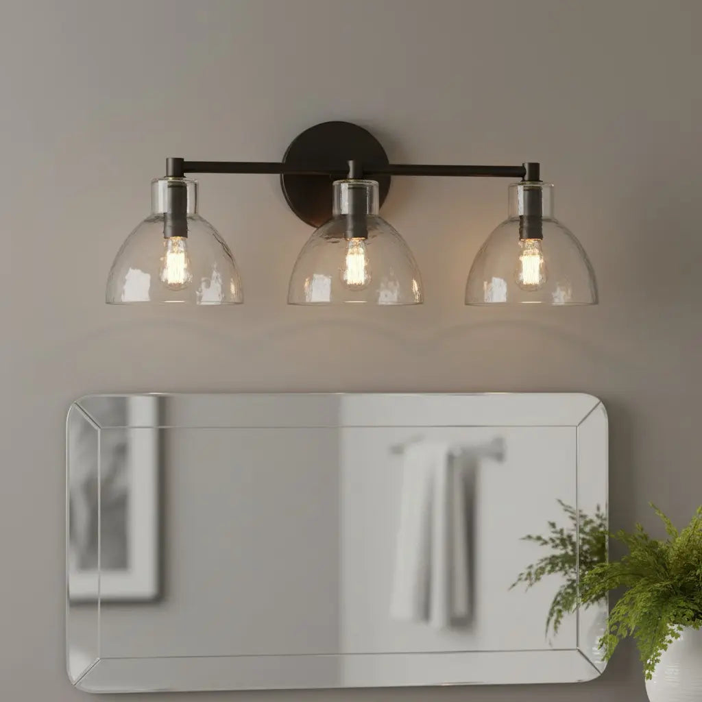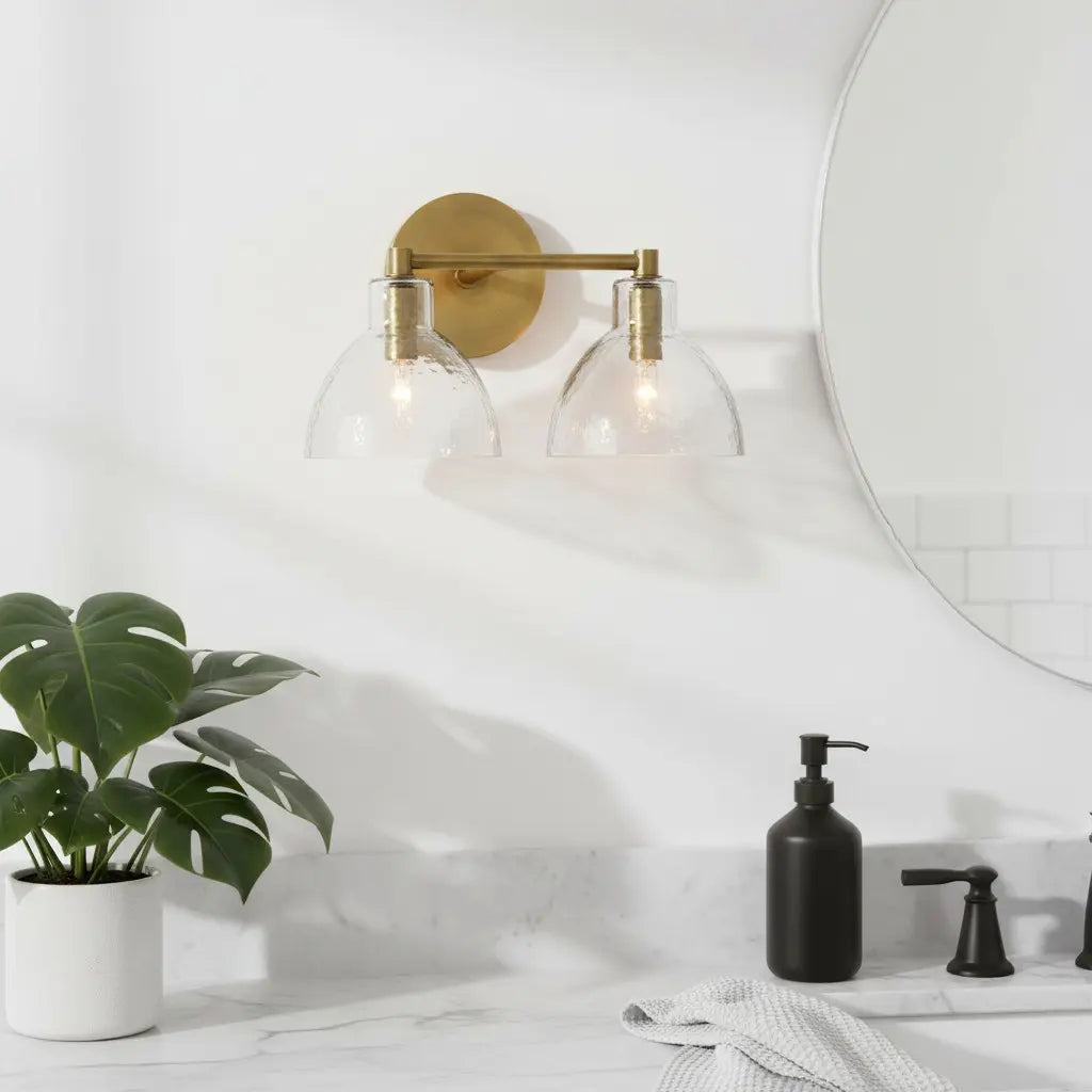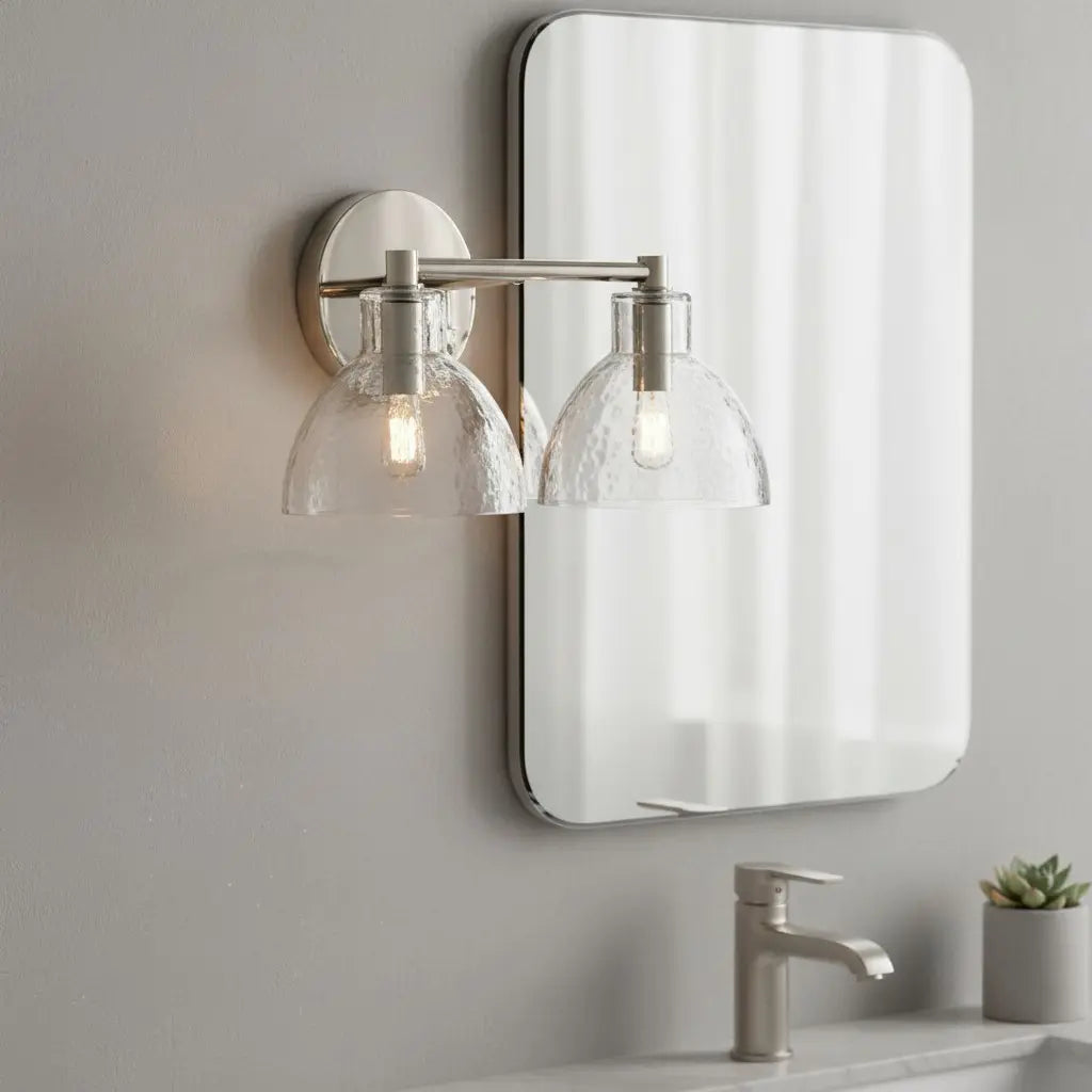 This modern, minimalist wall lamp pairs sleek metal accents with textured glass bowl shades, merging clean lines and subtle, organic charm. Balancing understated elegance and contemporary simplicity, it elevates interior spaces. Ideal for bedside walls, bathroom vanities, or living room accent areas.