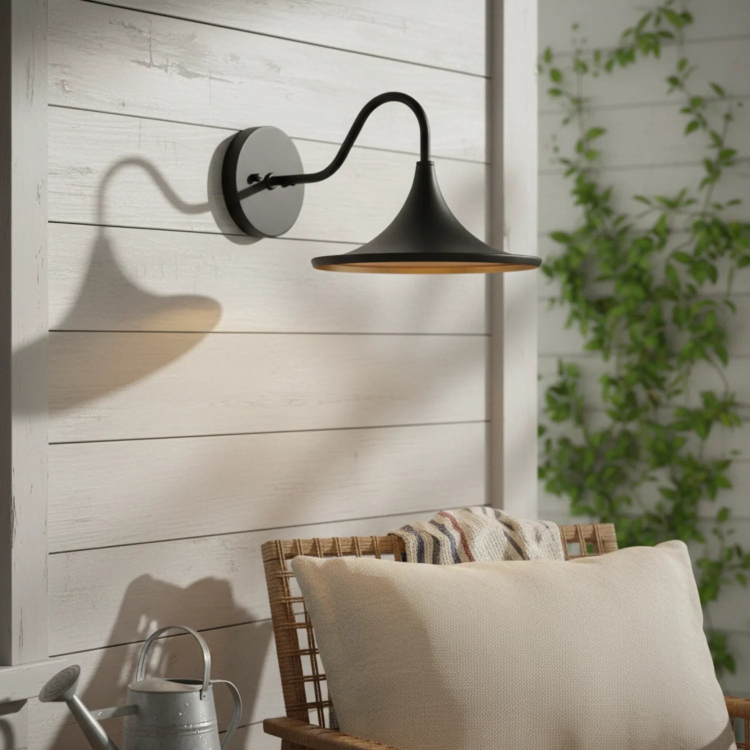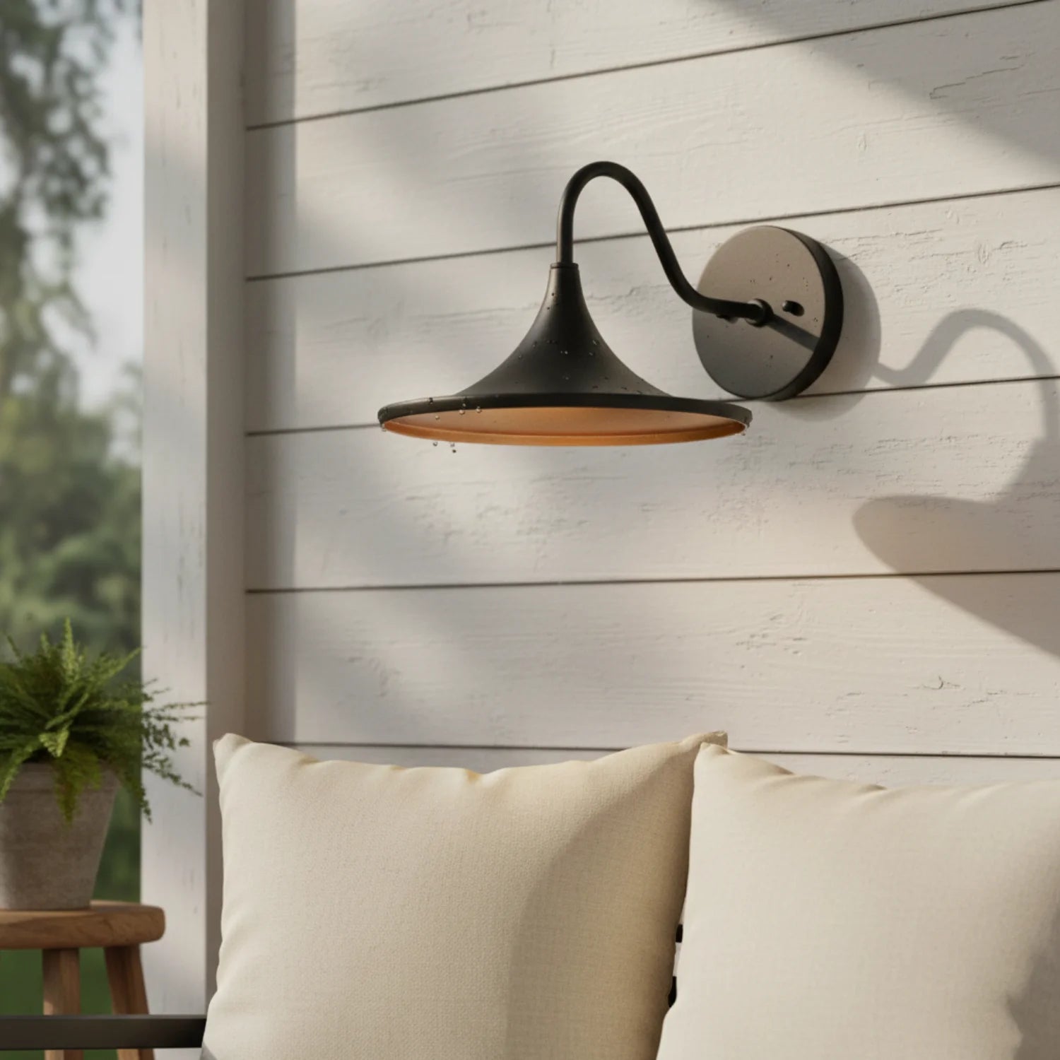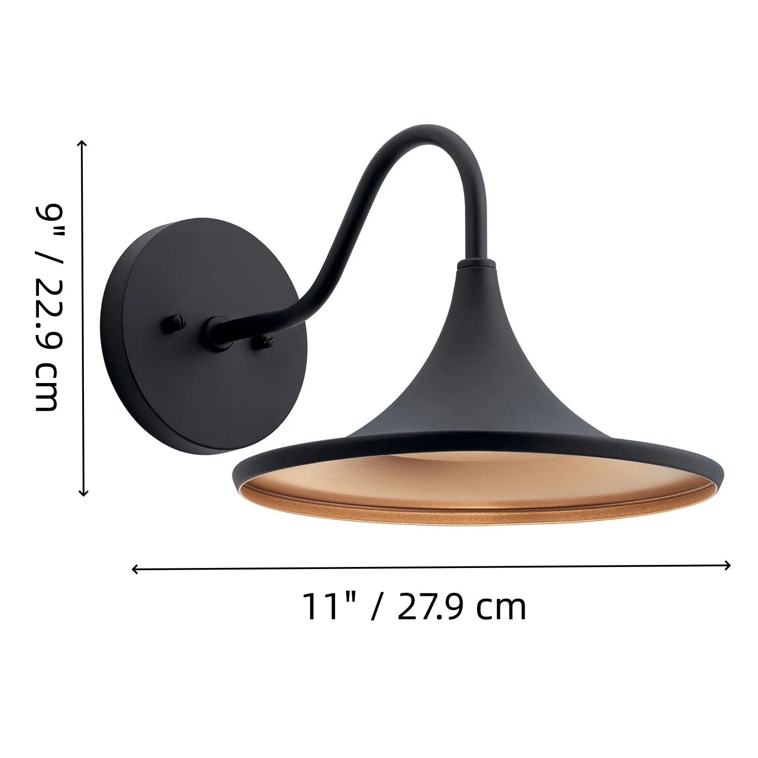 This outdoor waterproof LED wall sconce cleverly blends modern design with practical outdoor lighting functionality, creating a warm and inviting glow for your outdoor spaces. Its domed metal shade paired with a contrasting metallic lining adds depth and aesthetic appeal, making it ideal for porches, patios, and entrances.