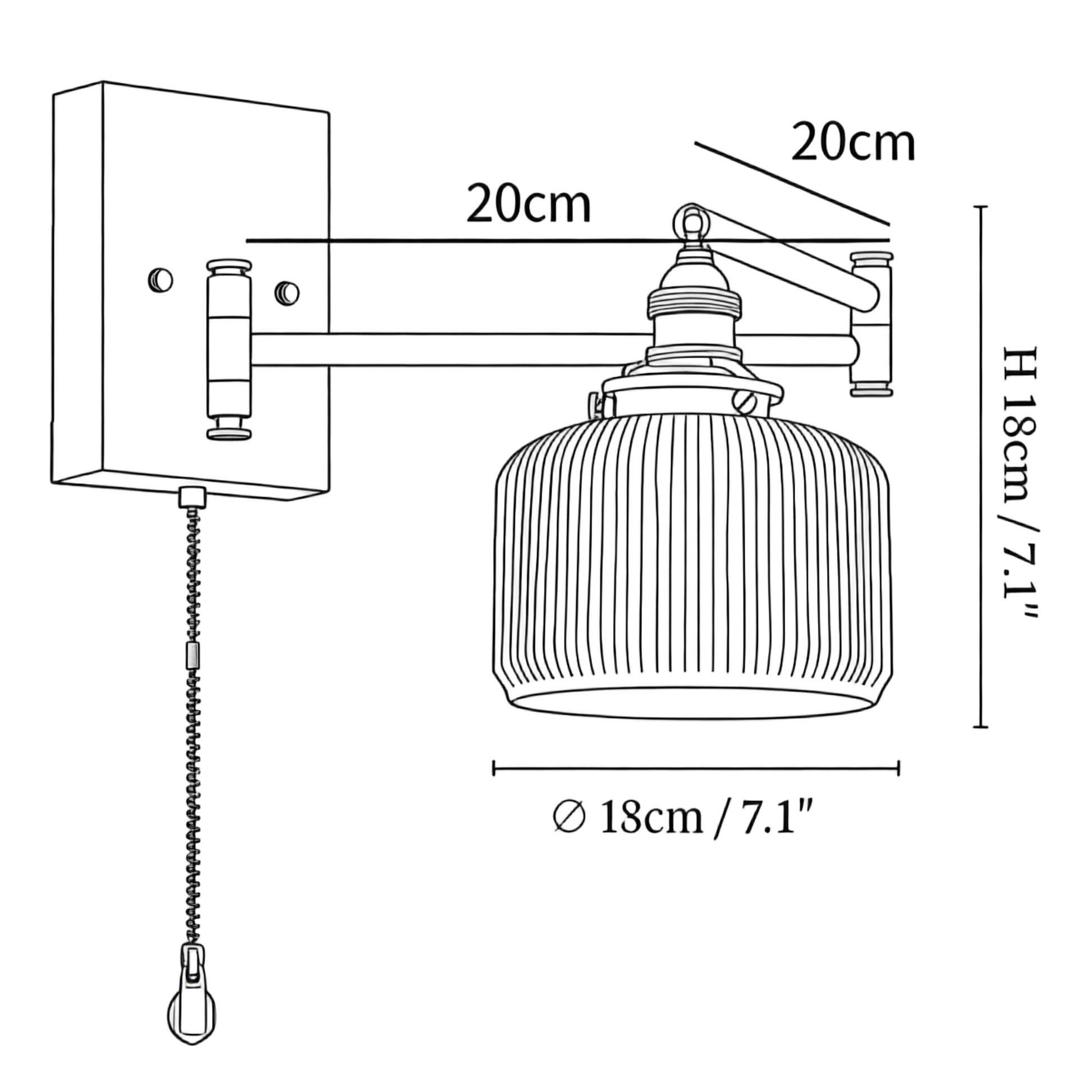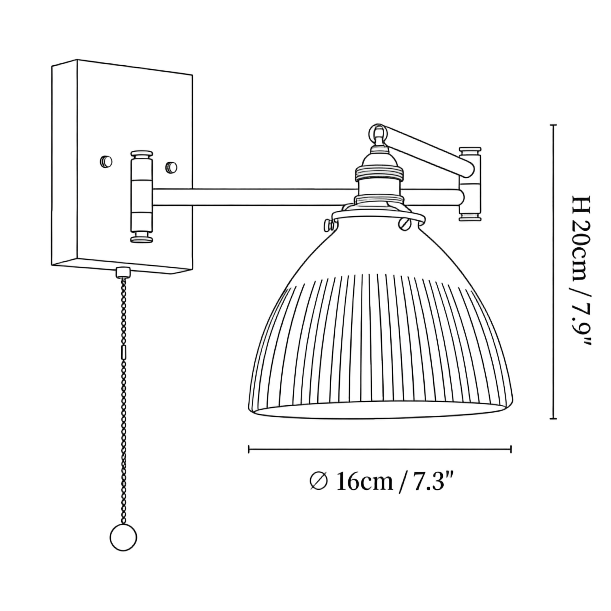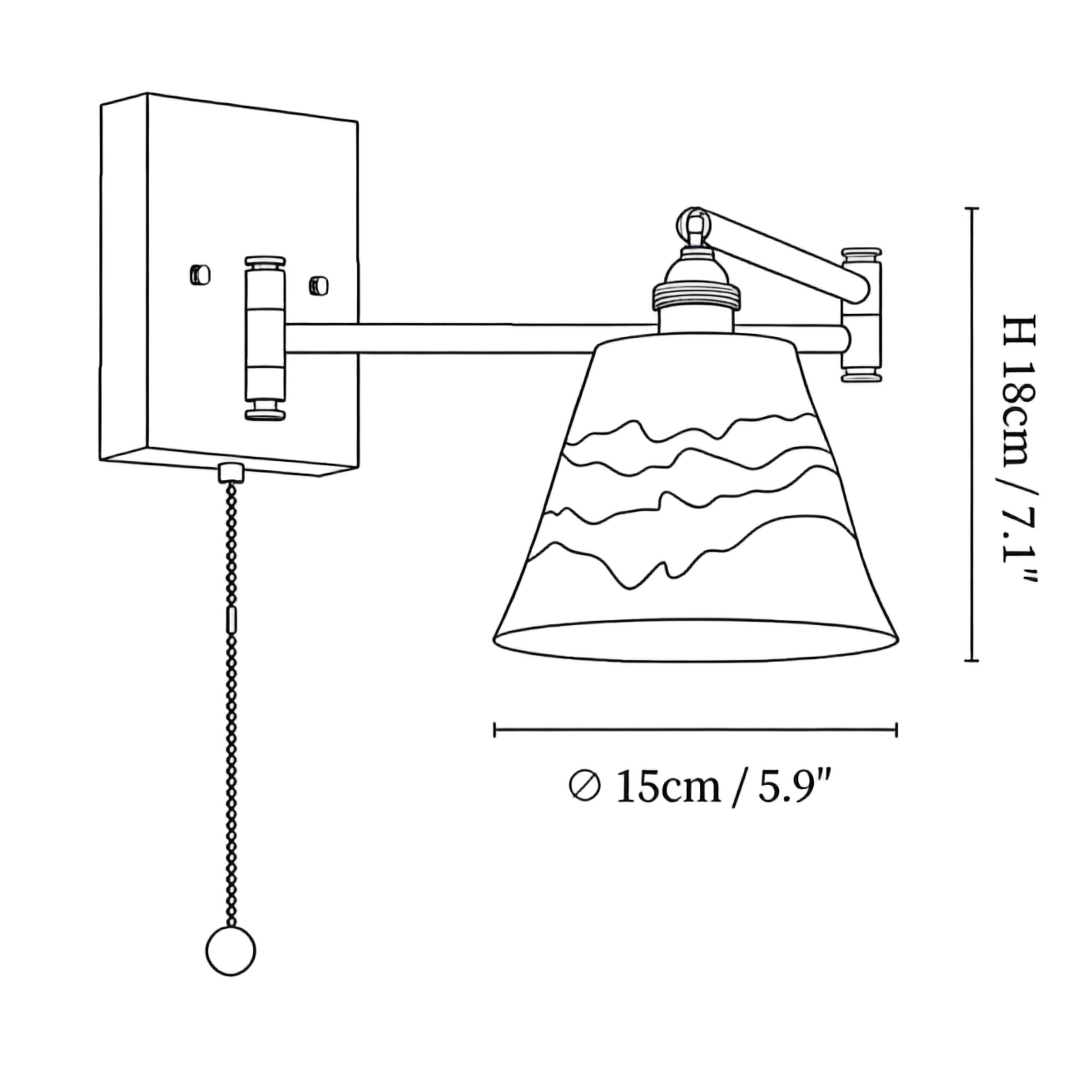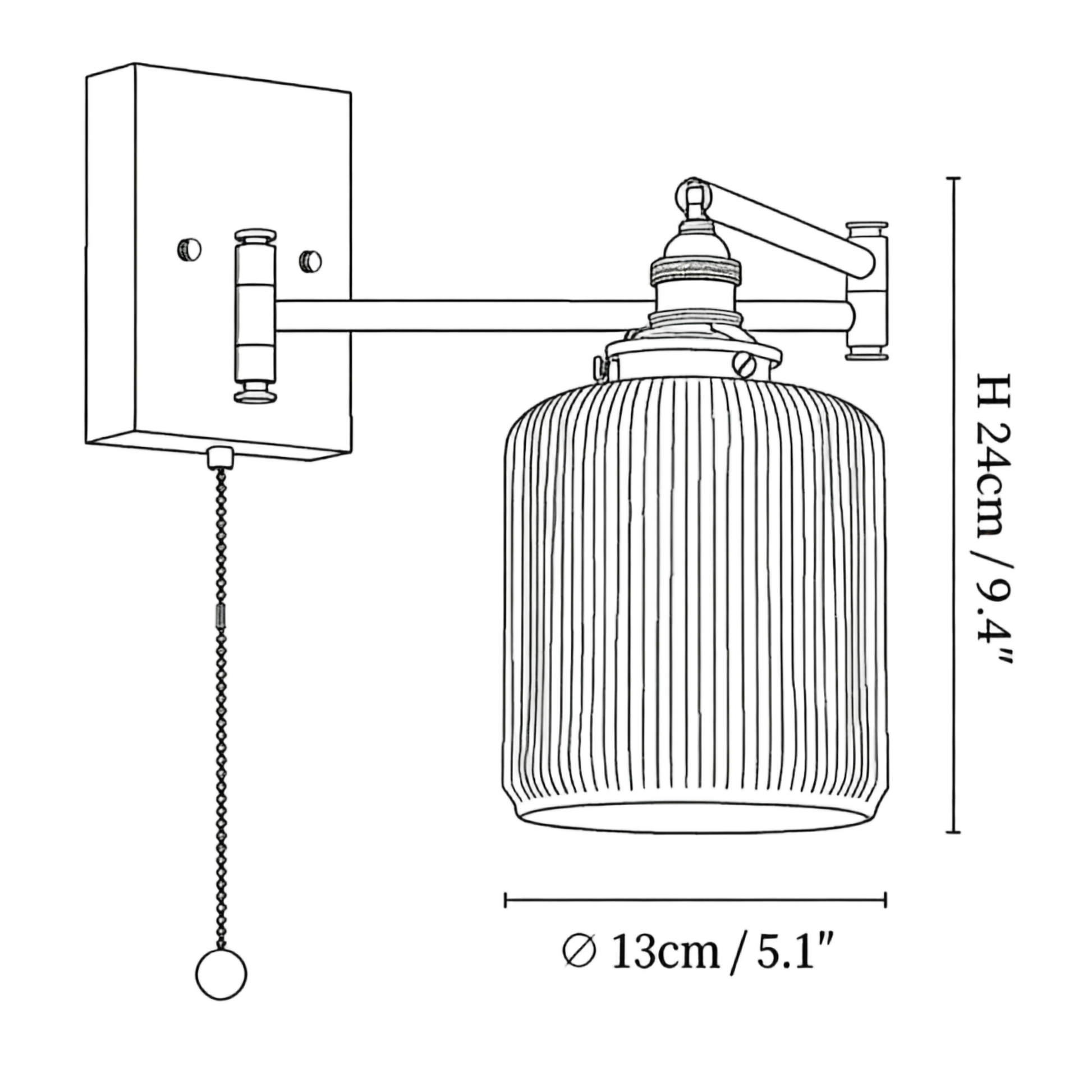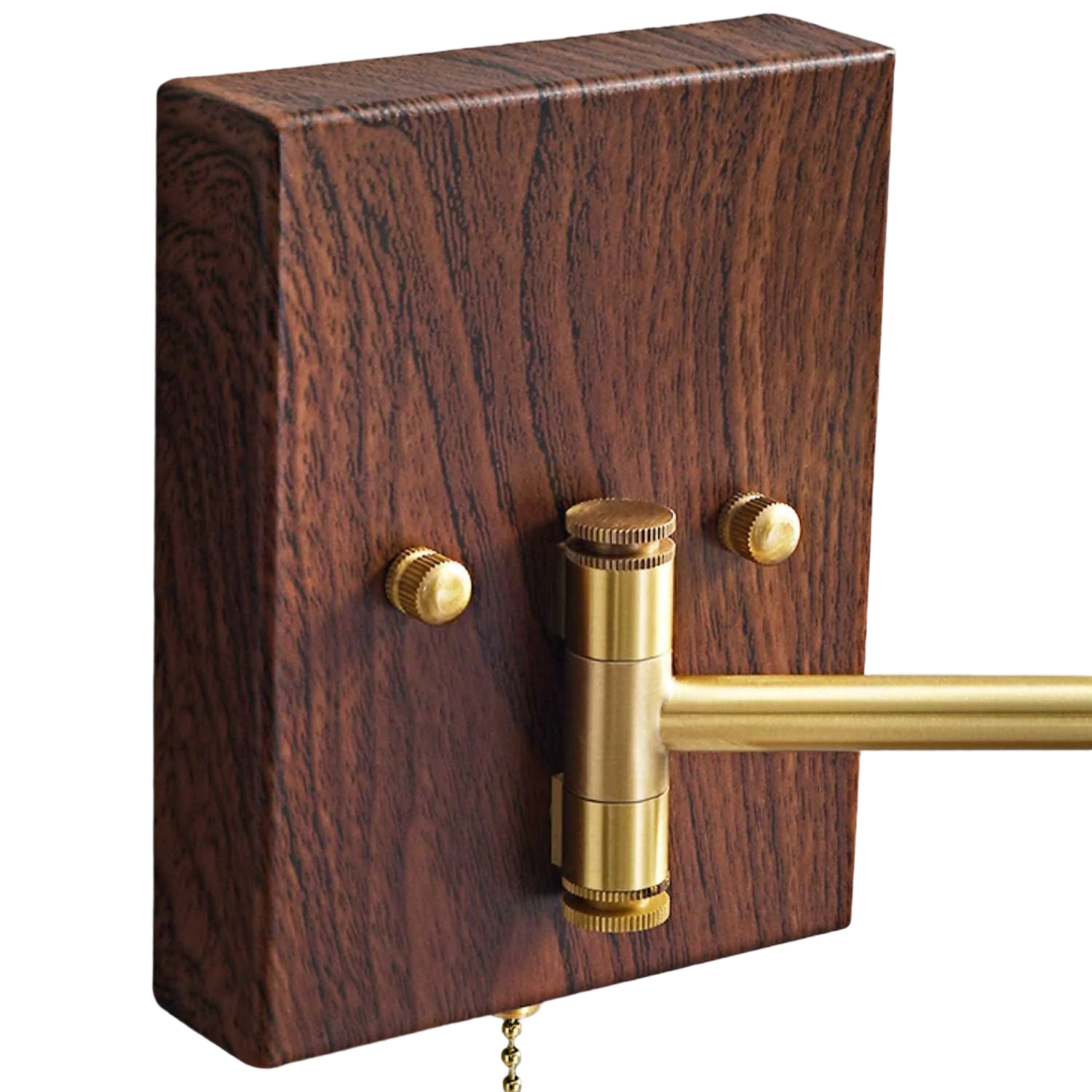 A refined ceramic-hood wall sconce with a brass-finish adjustable swing arm and warm wood backplate. The ceramic diffuser casts soft, directional light ideal for bedside reading, hallways, hotel rooms, cafés, or living areas. Pull-chain switching and a swivel arm deliver practical, vintage-inspired flexibility. Multi-attribute friendly - available in different finishes and sizes.
