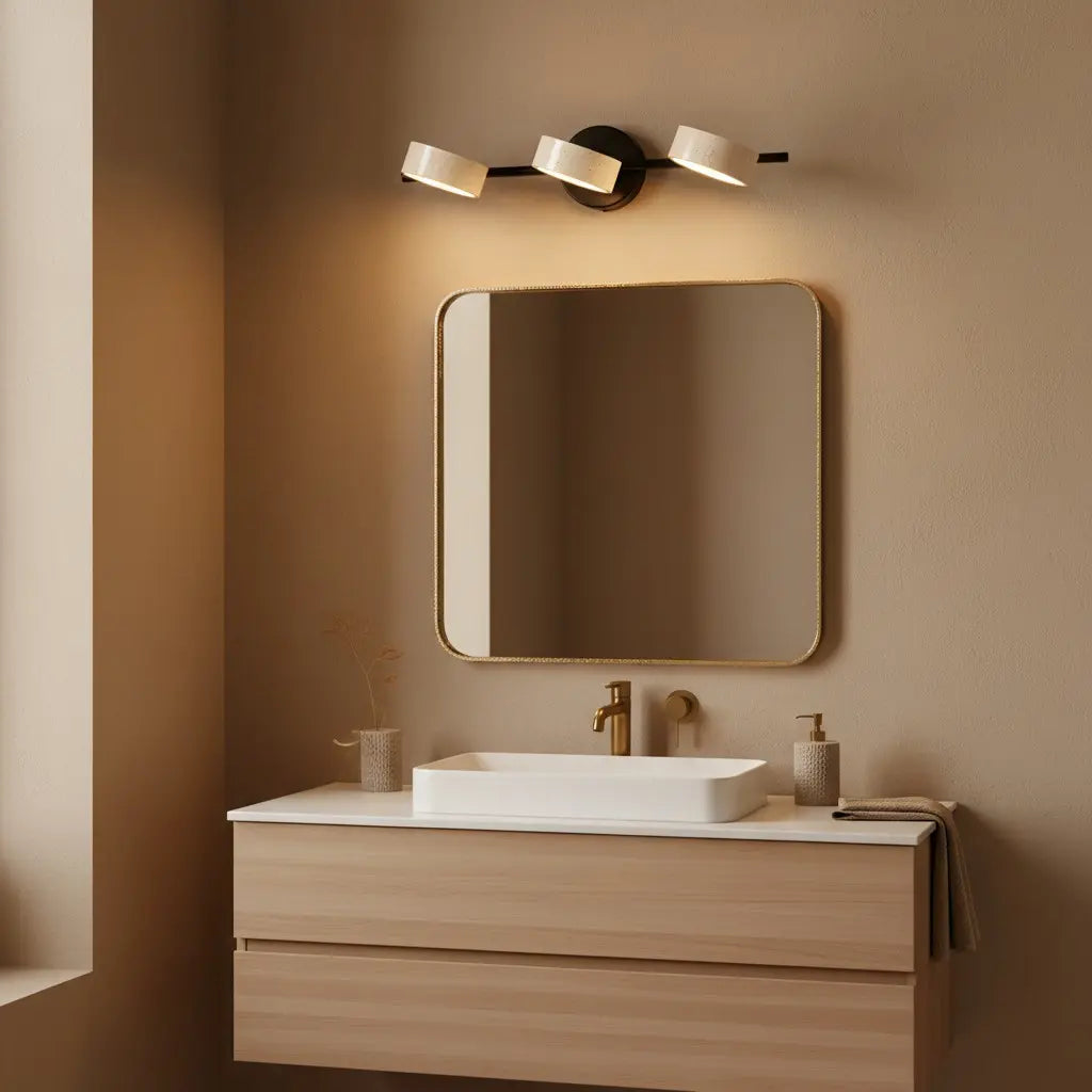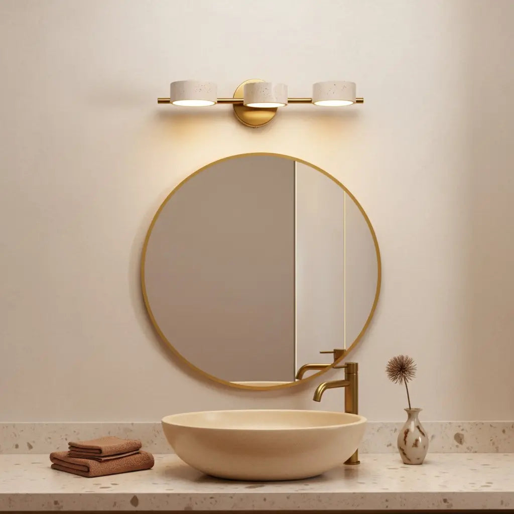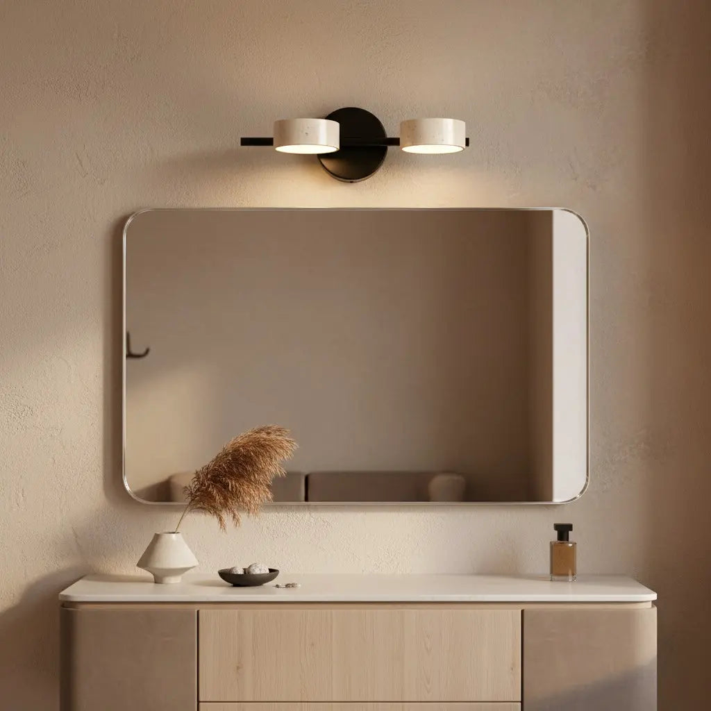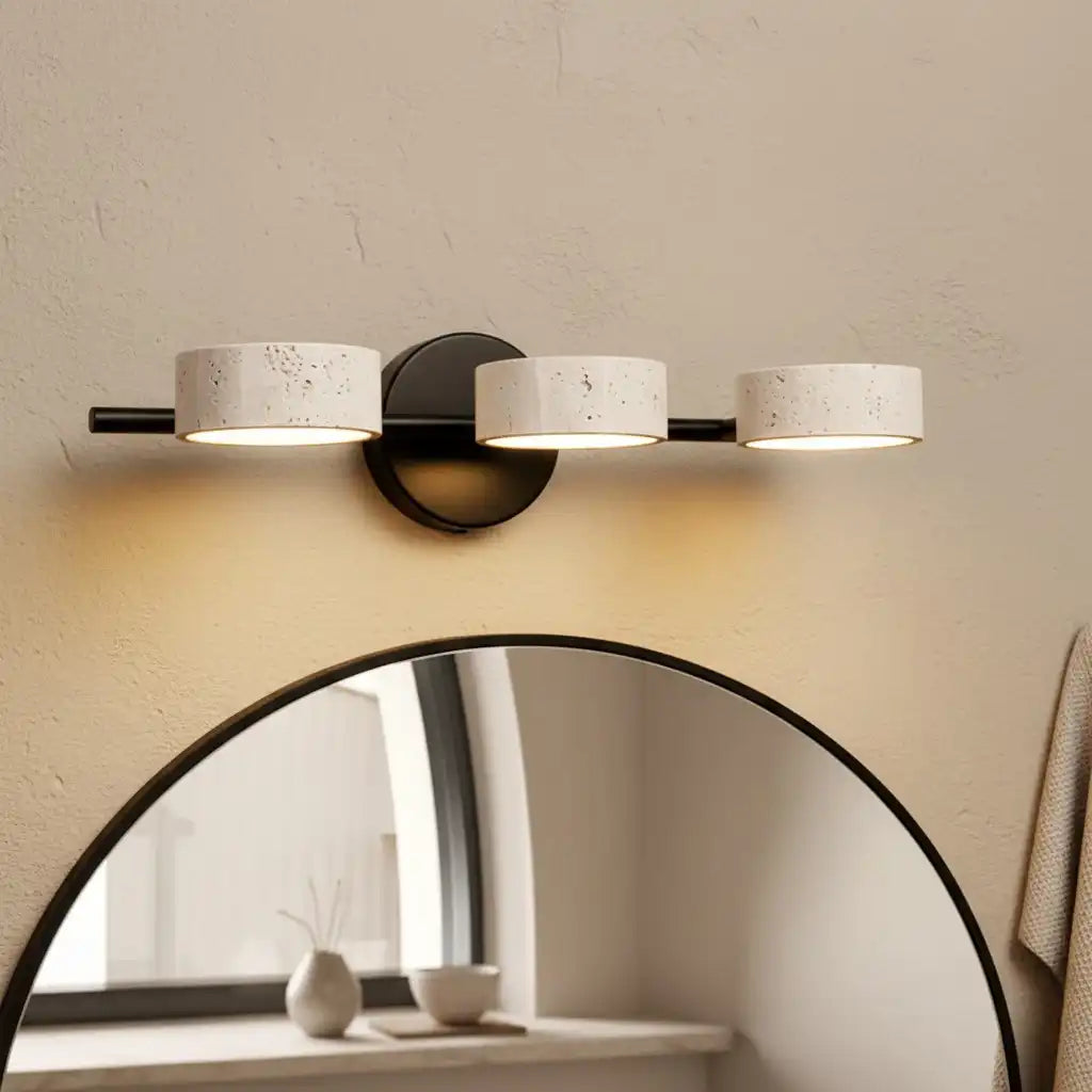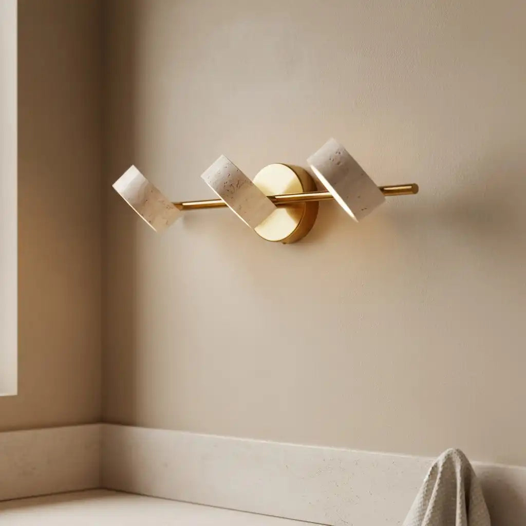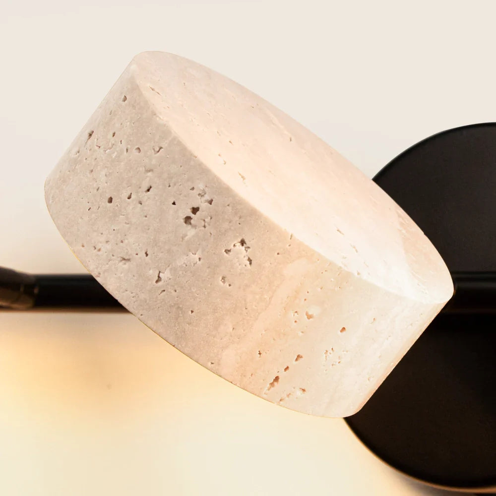 This wabi-sabi wall light merges natural travertine texture with sleek metal accents, balancing organic imperfection and understated modern form. It brings warm, earthy charm to interiors. Ideal for bathrooms, entryways, or minimalist organic living spaces.