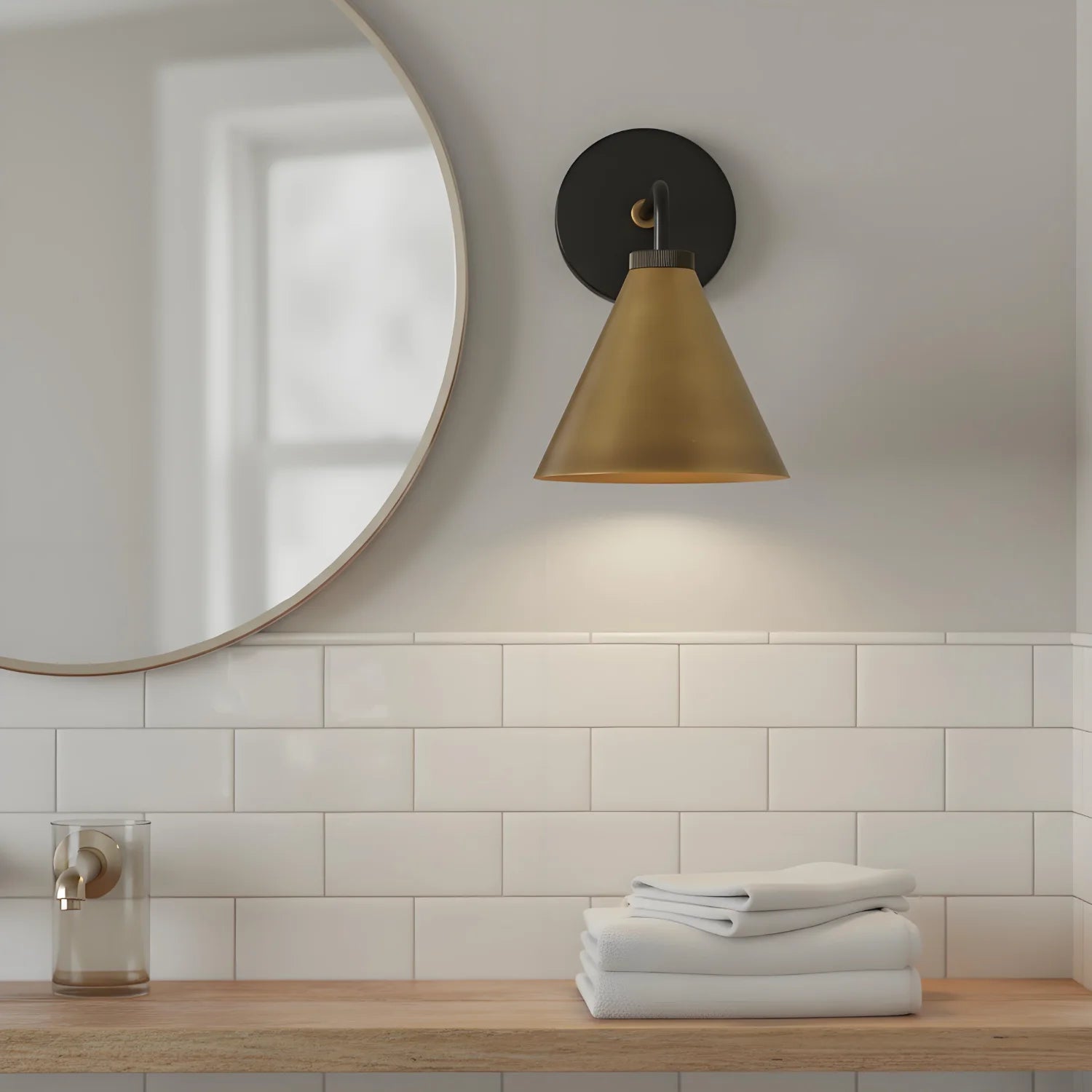 This industrial wall sconce has a cone shade and metal bracket, with multi-color/size options and a simple retro design.