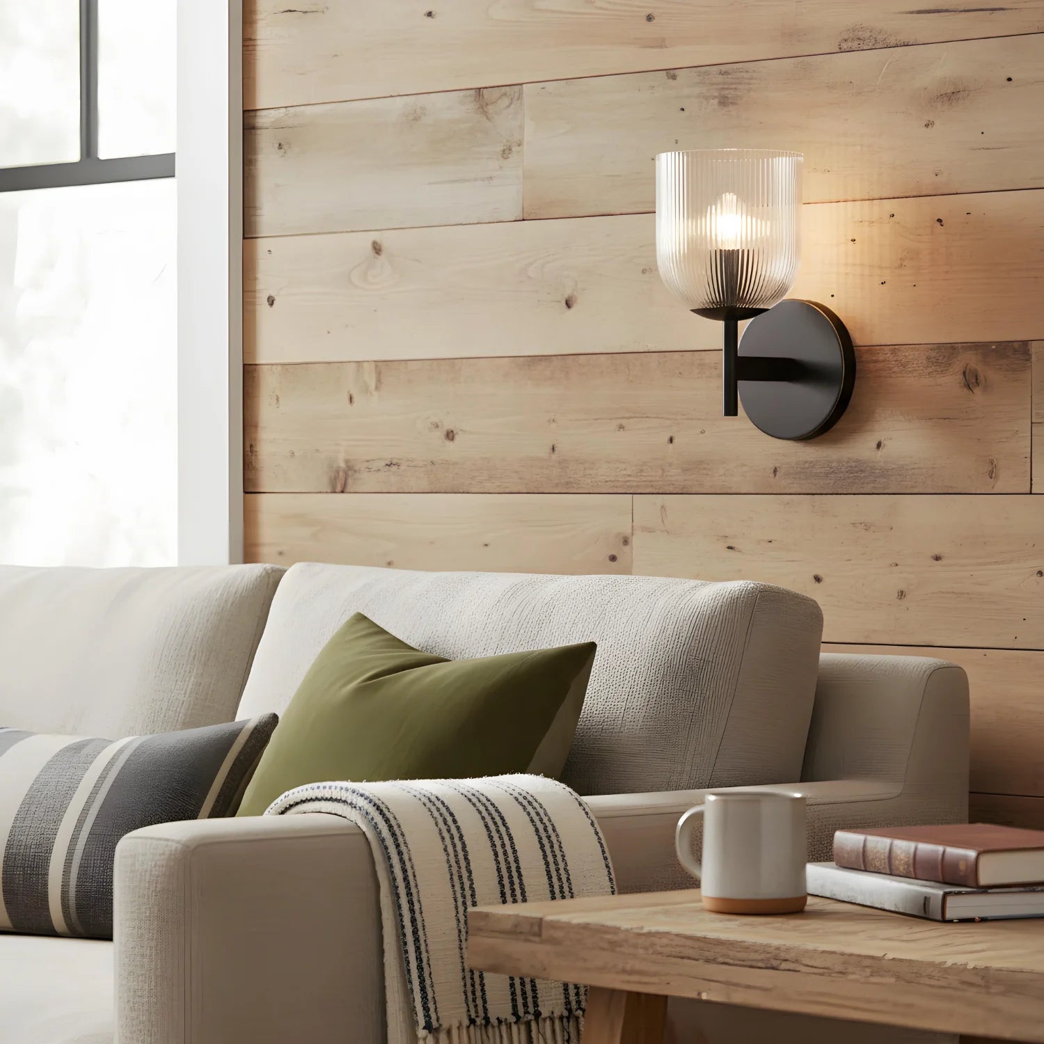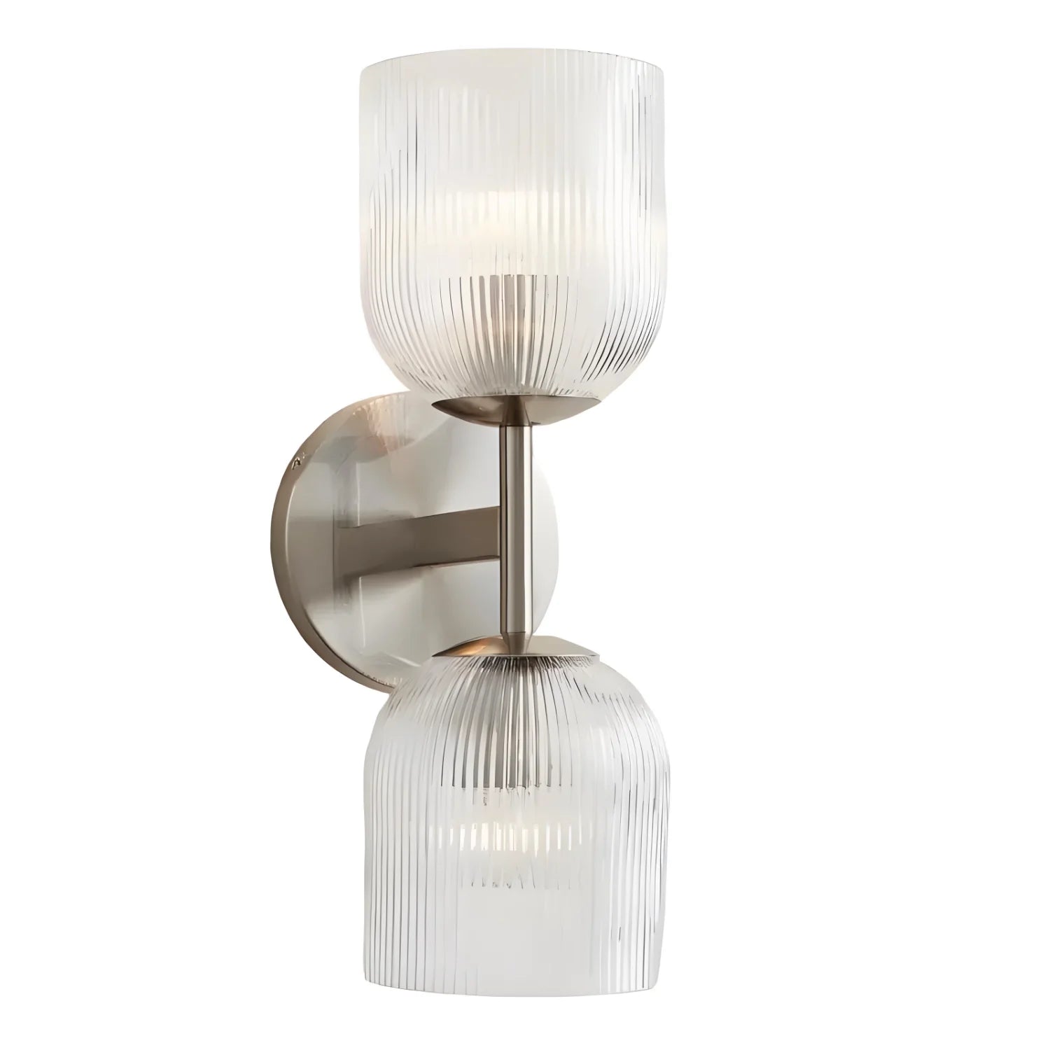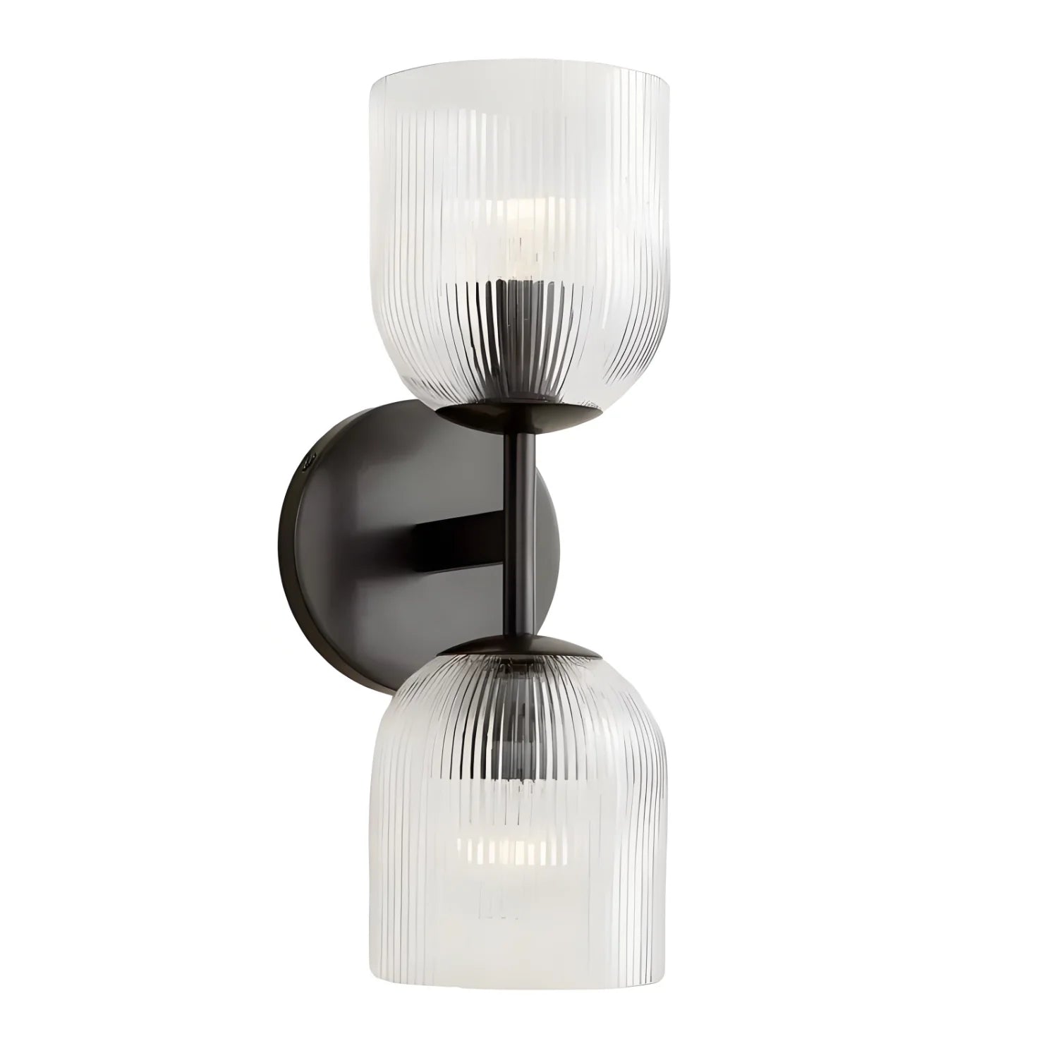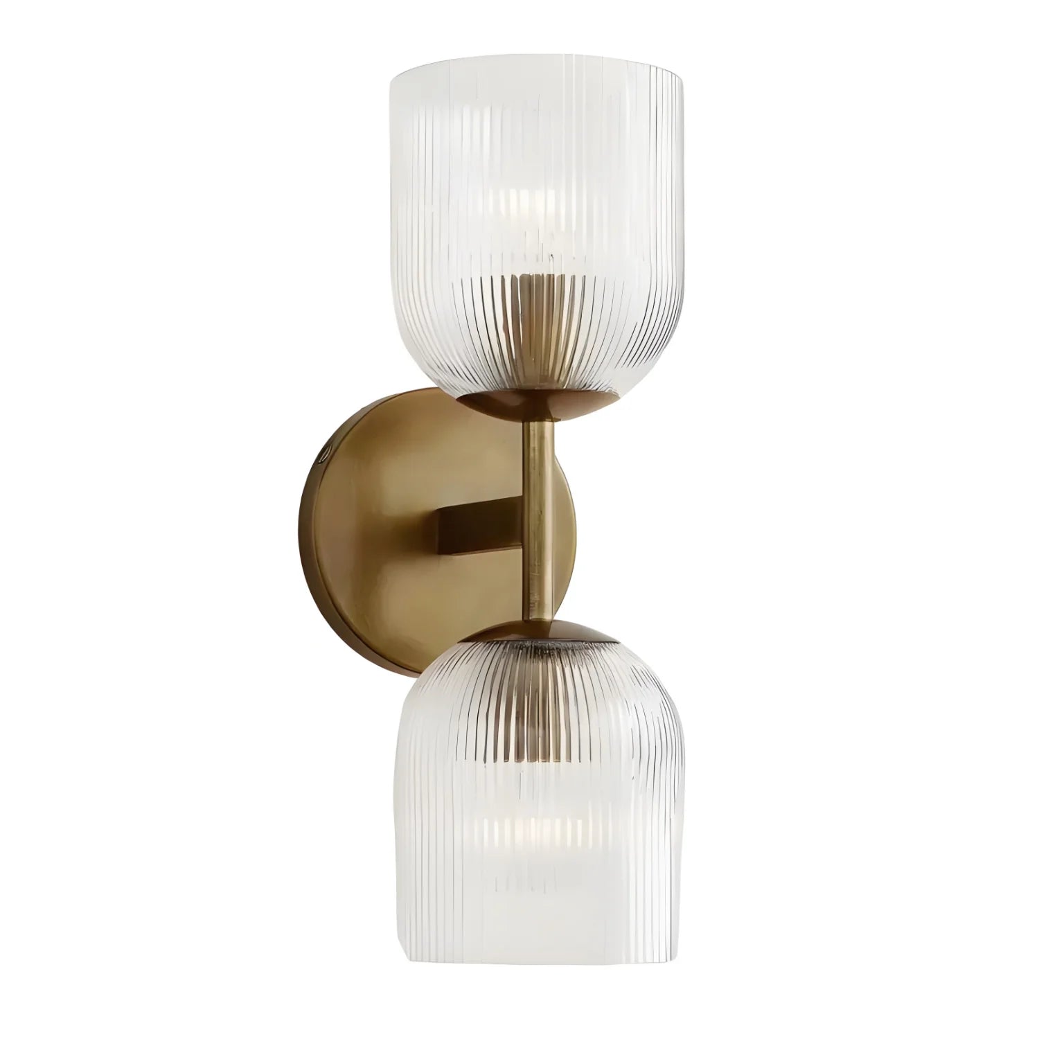 This luxury wall lamp features a metal frame, striped glass shade, multi-size, simple-sophisticated design, adds elegance.