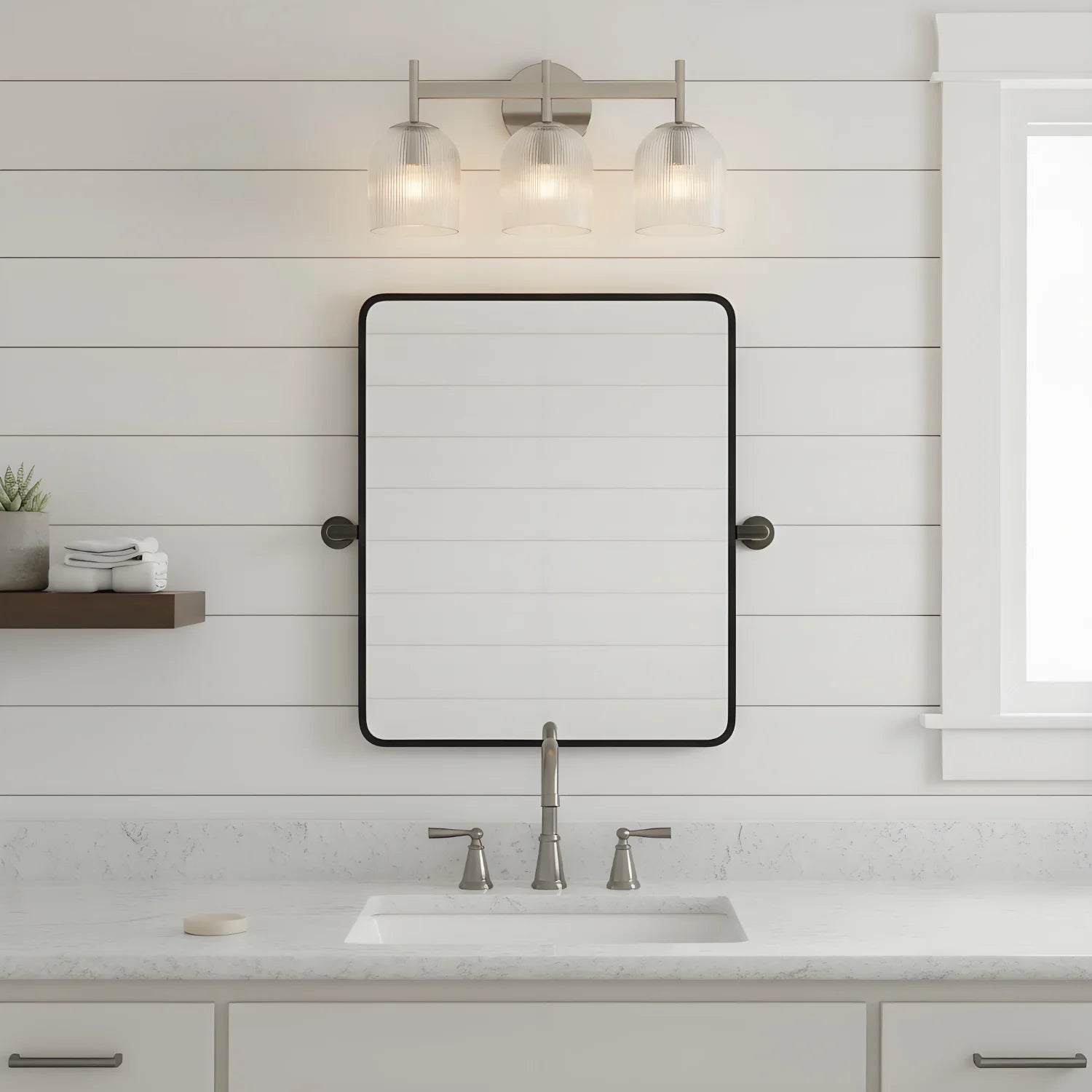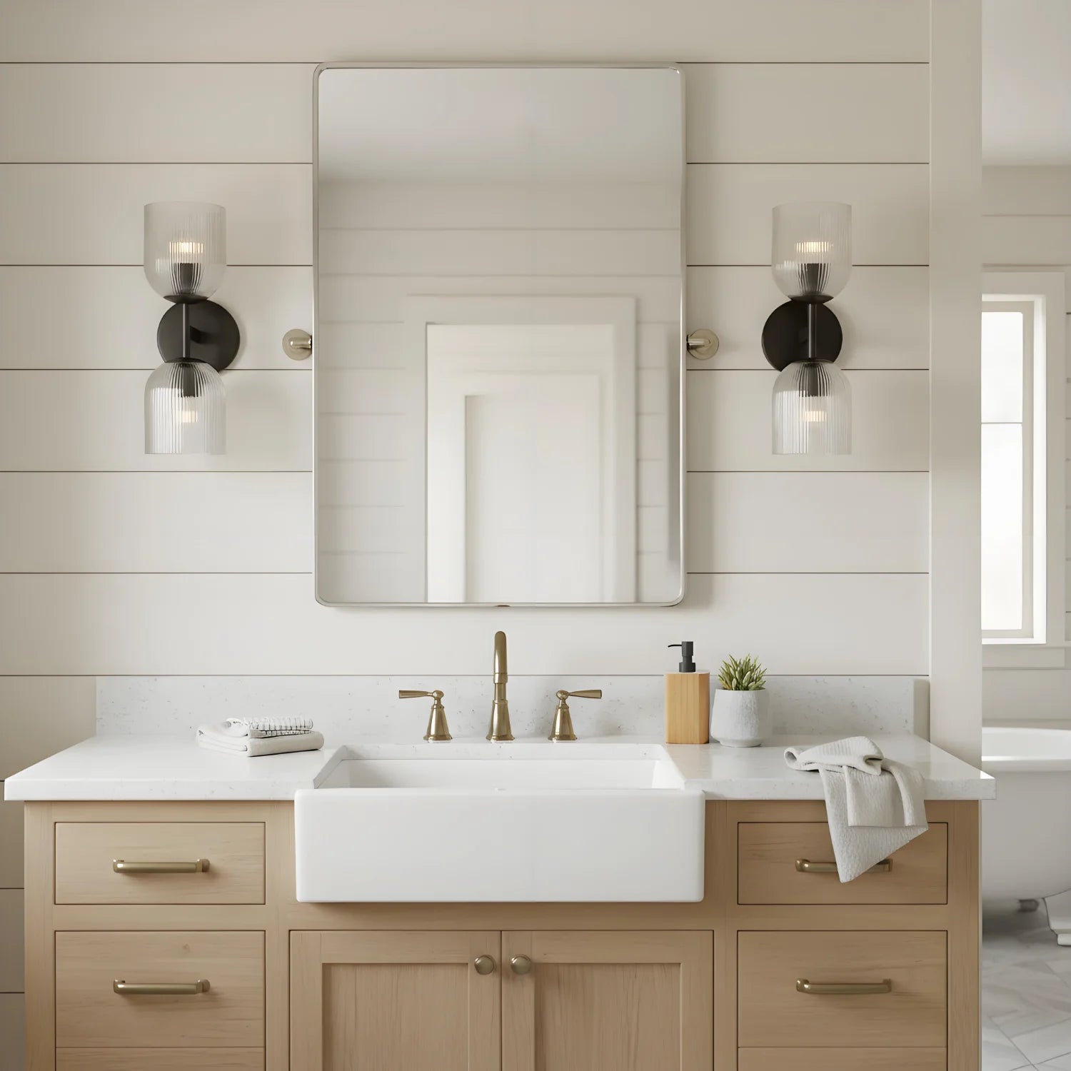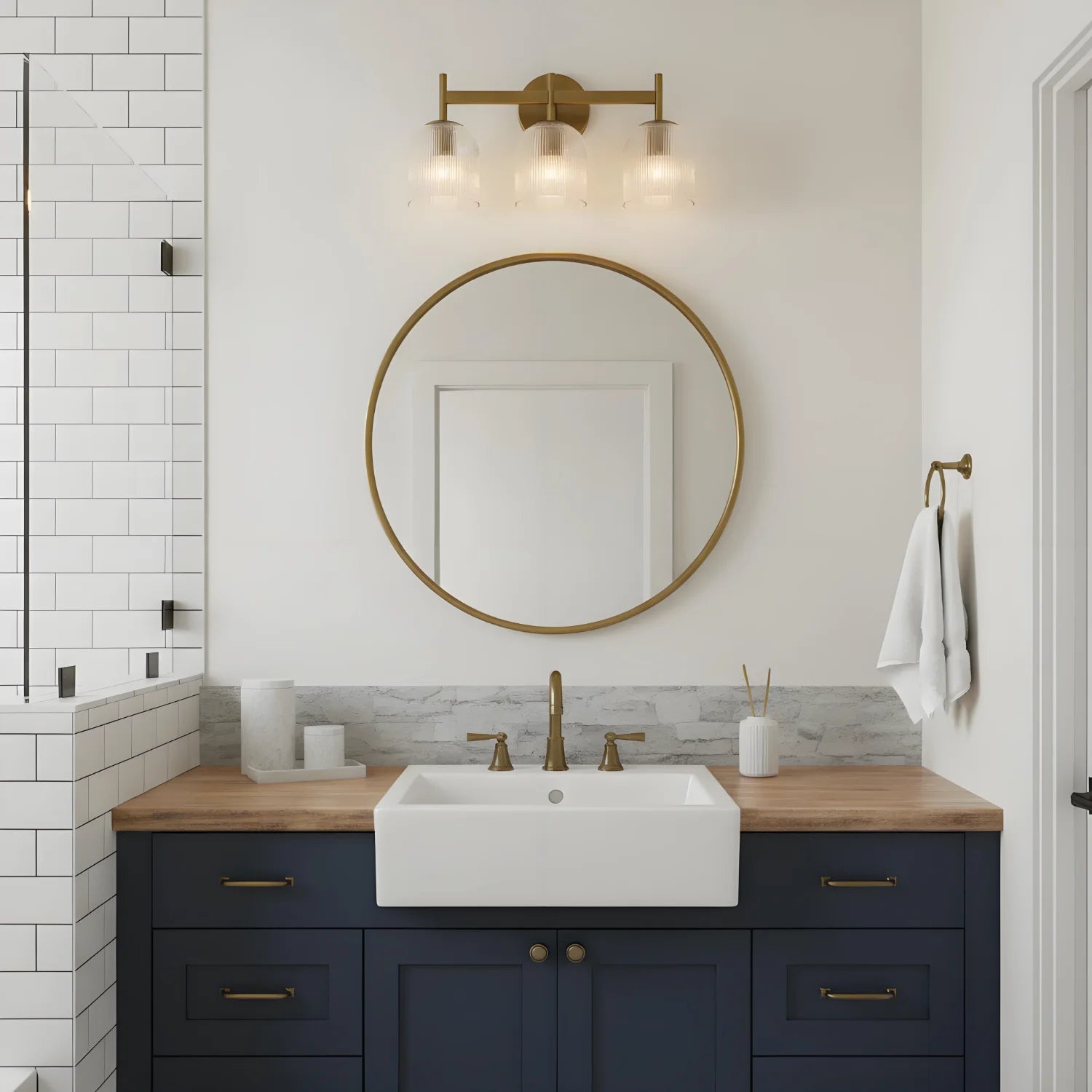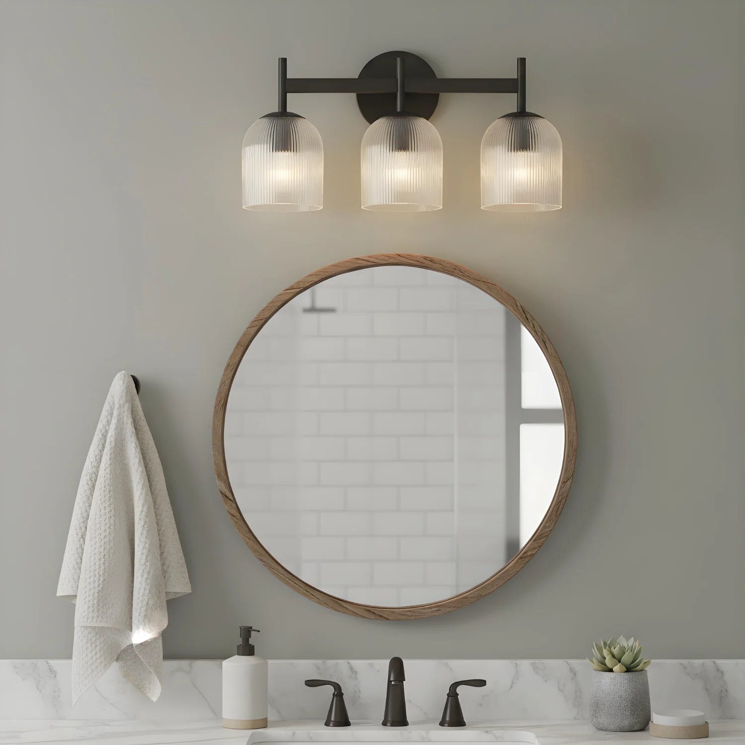 This luxury wall lamp features a metal frame, striped glass shade, multi-size, simple-sophisticated design, adds elegance.