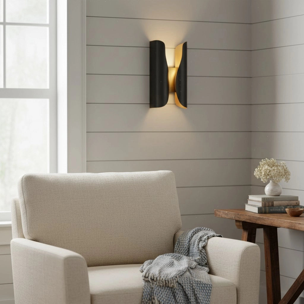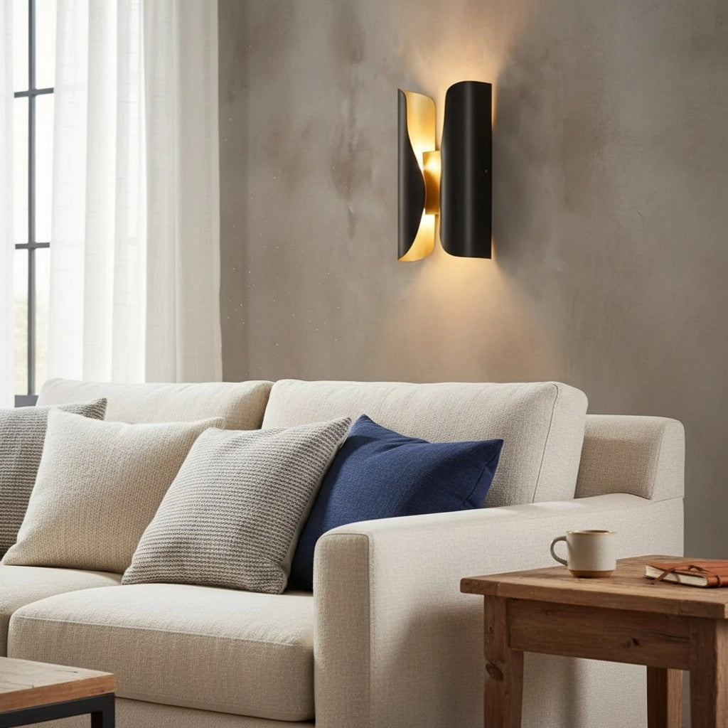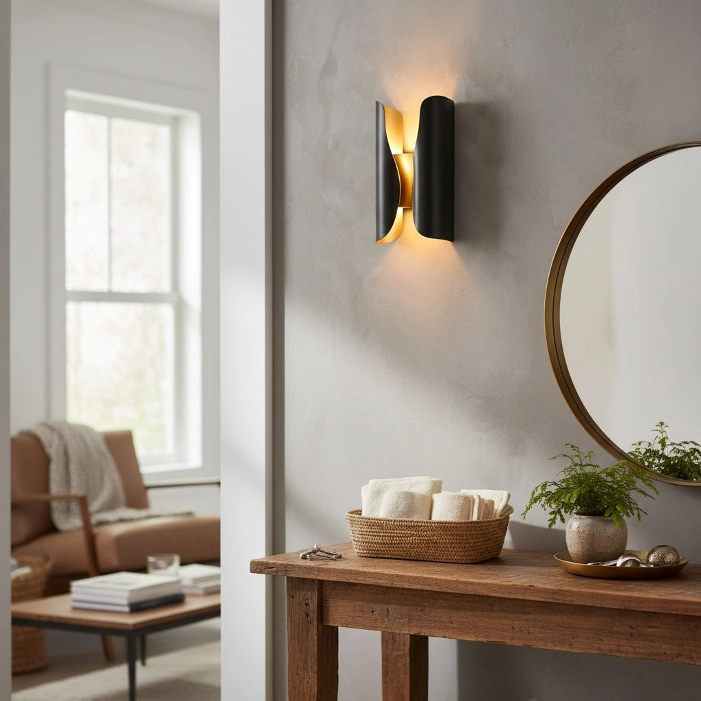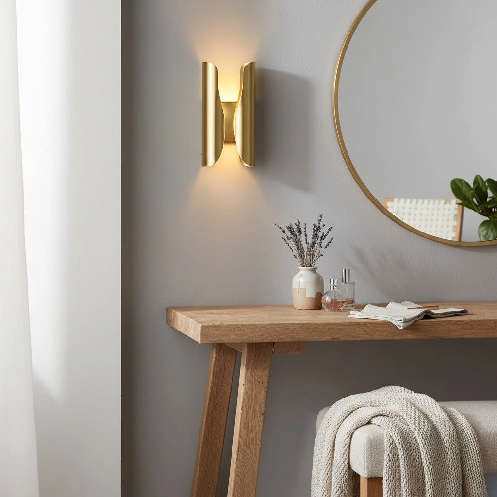 This 2-Light wall sconce is crafted from premium materials, and its unique curved profile and brass finish make it suitable for various bathroom vanity environments.