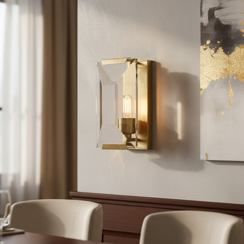 The Modern Crystal Wall Sconce blends contemporary style with timeless elegance. Crafted from high-quality iron and faceted crystal, it delivers dazzling illumination and refined sparkle. Perfect for living rooms or bedrooms, this sconce creates an inviting atmosphere, adding effortless glamour and functional artistry to modern interiors.