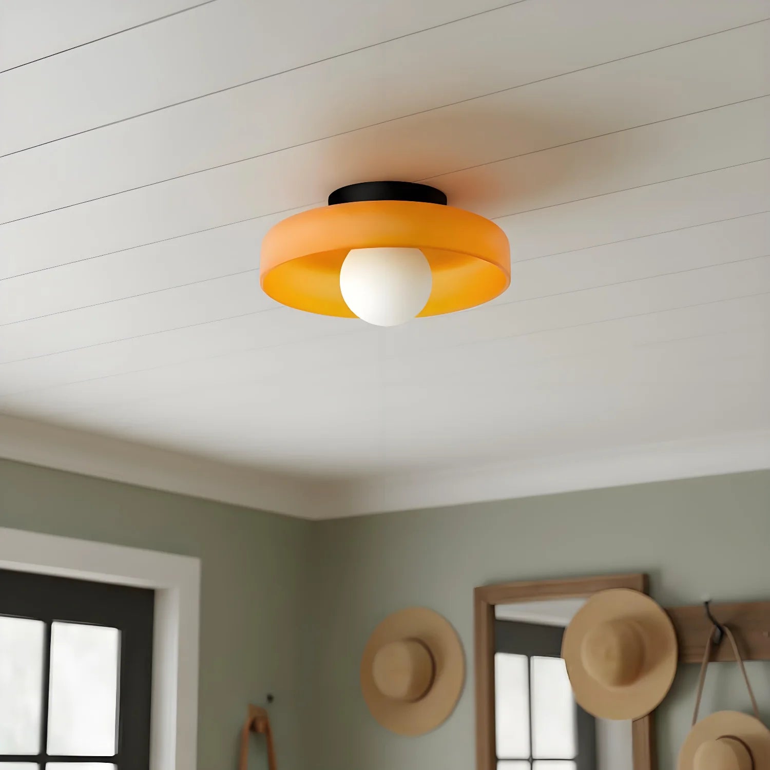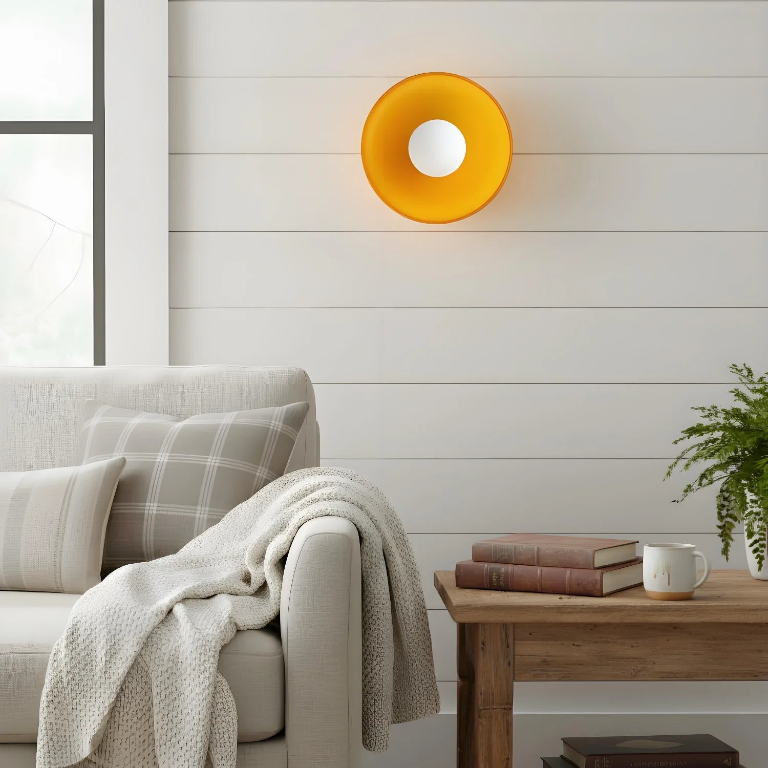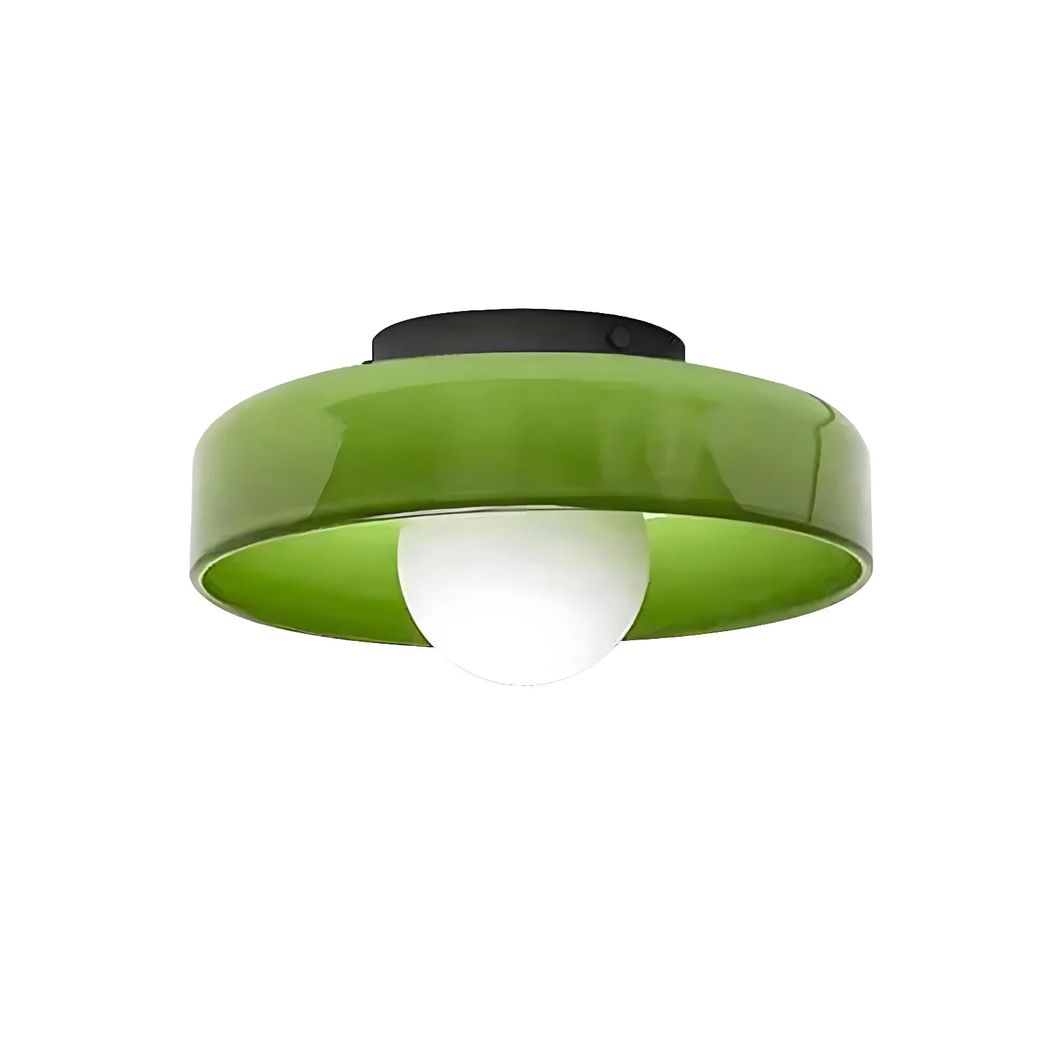 This modern ceiling / wall lamp, circular glass shade with spherical design, multi-color, simple chic style, adds fashion-art flair to spaces.