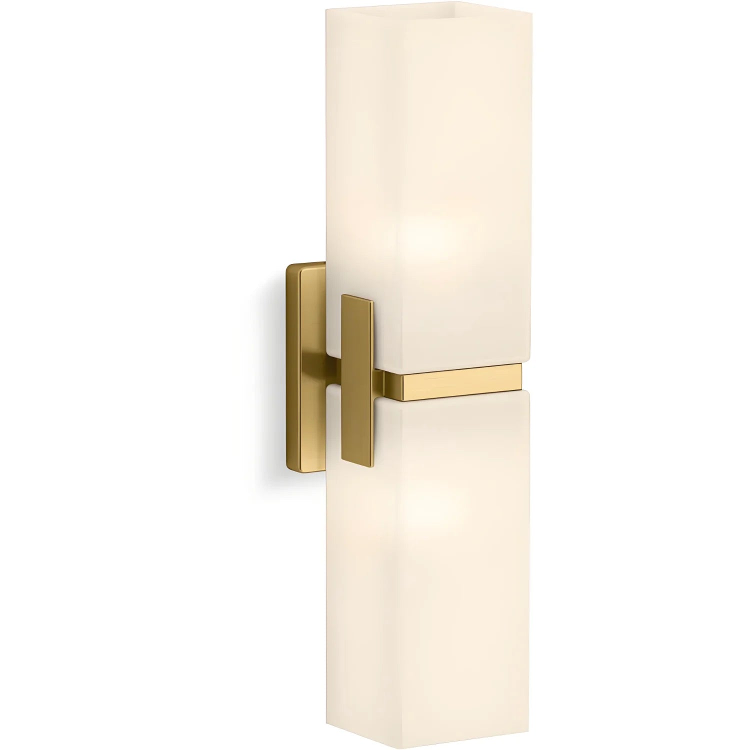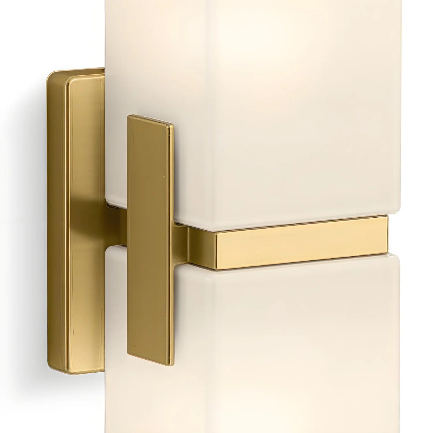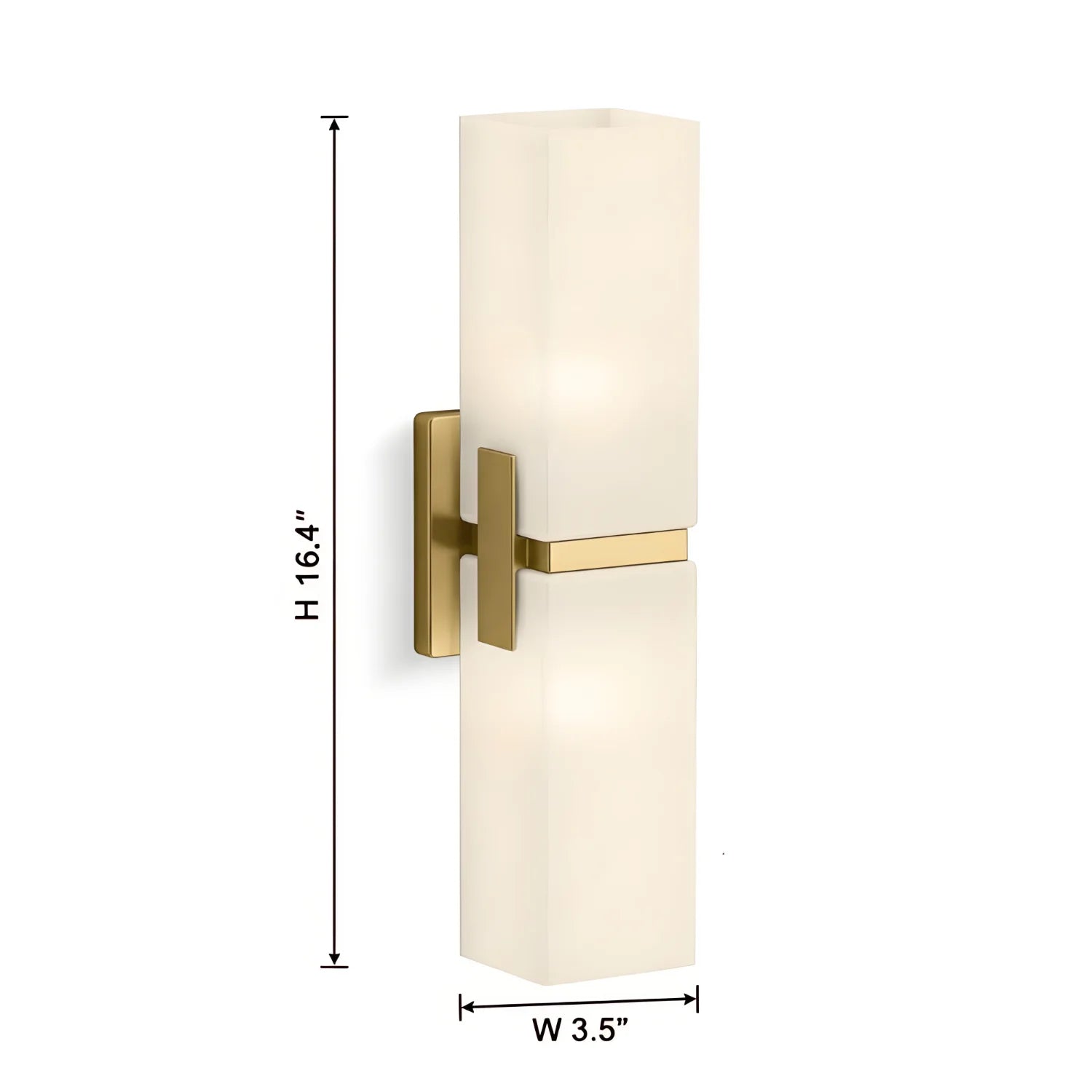 This wall lamp boasts frosted glass shade and brass details, a sleek choice to add elegance to bathrooms or chic spaces.