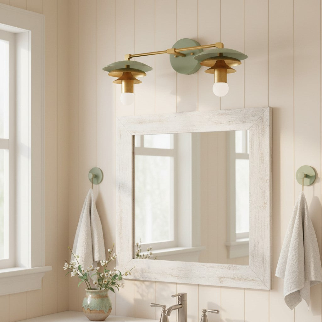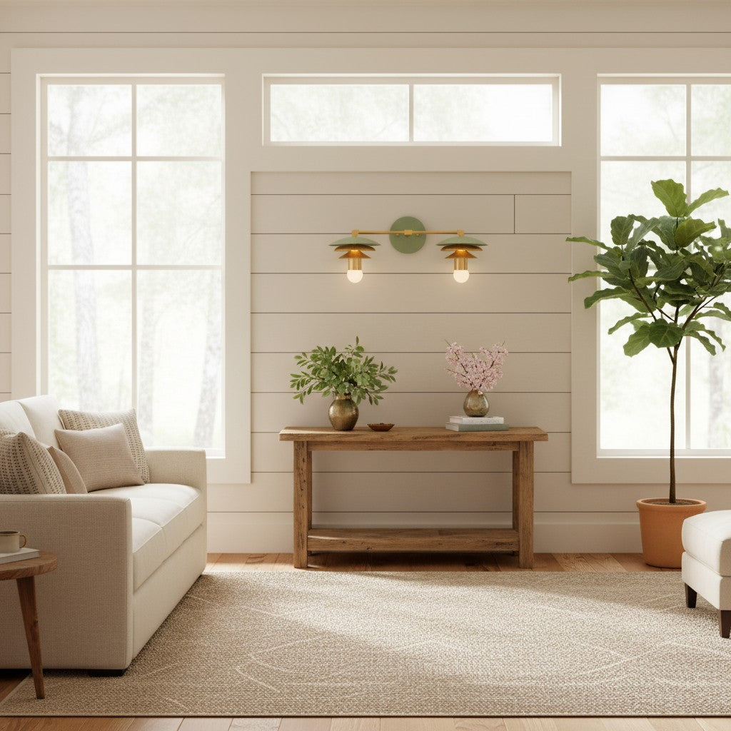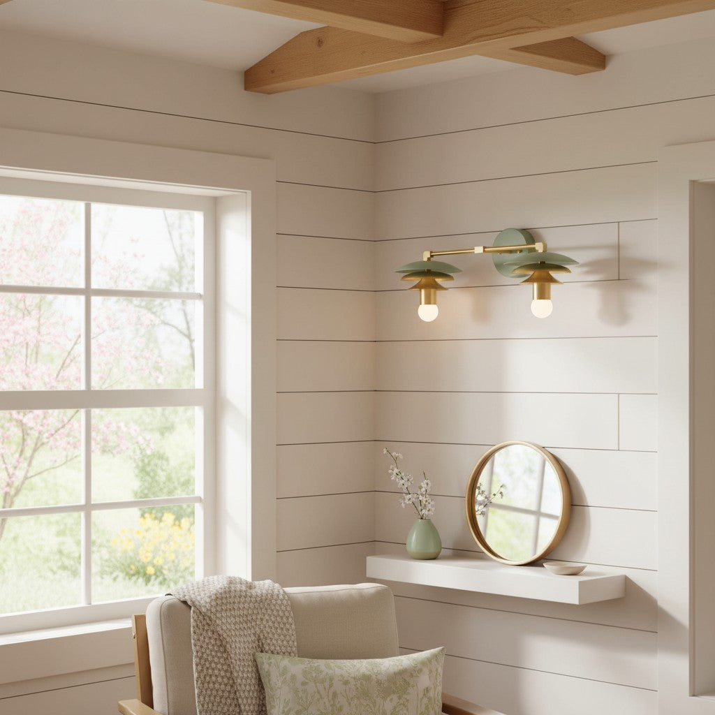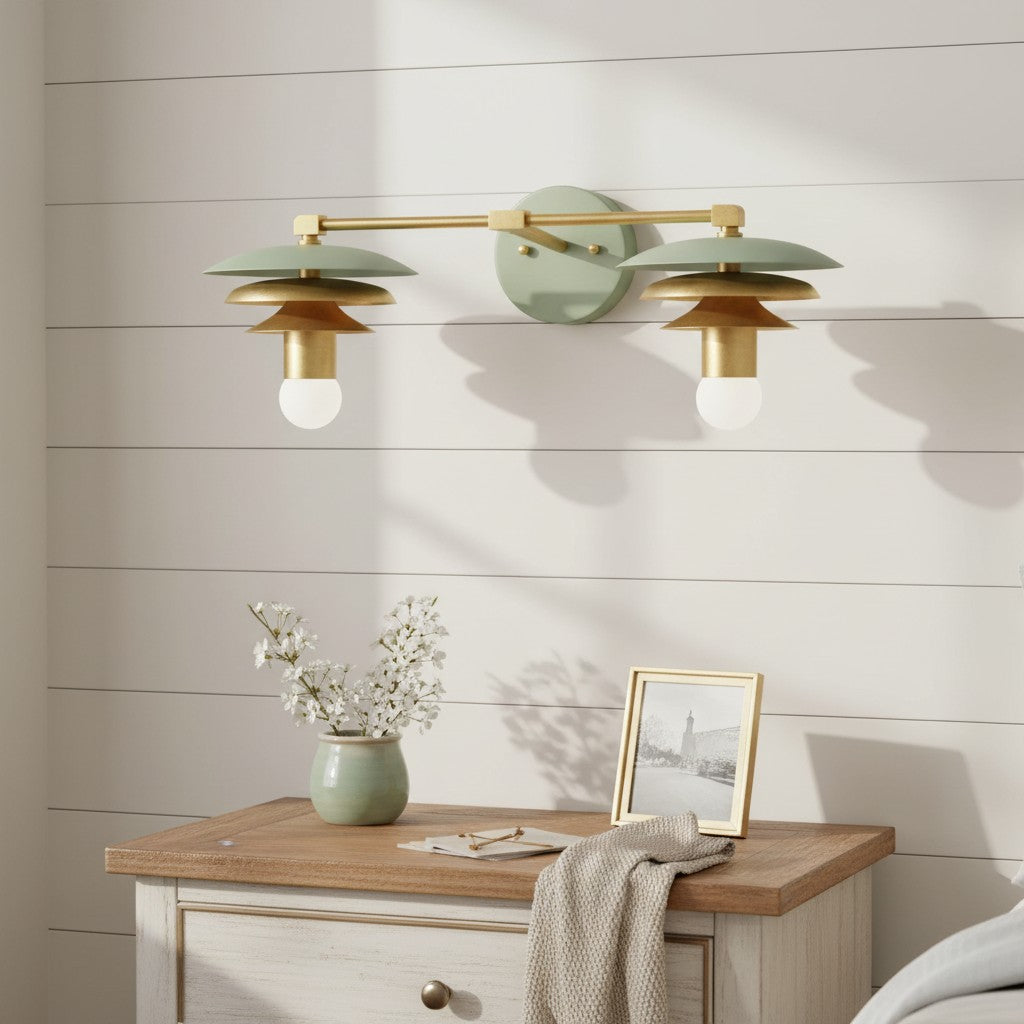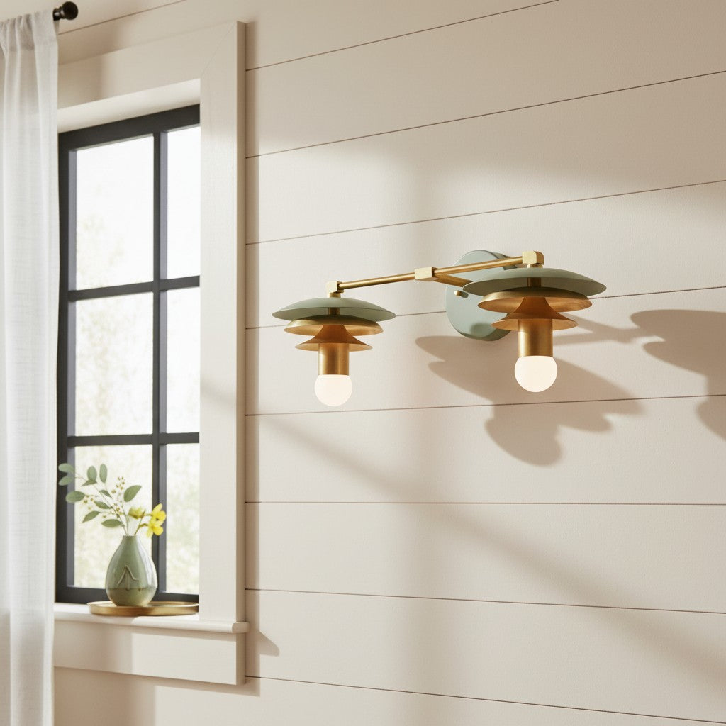 Vintage Scalloped Linen Brass Accent Wall Light